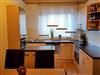 Moderne Einbauküche mit Essecke für 4 Personen, Herd und Backofen mit Dunstabzugshaube, Kühl- und Gefrierschrank, Kaffeemaschine, Wasserkocher, Eierkocher, Mikrowelle, Mixer, Spülmaschine, Kleinigkeiten wie z.B. Salz, Gewürze, Spülmaschinentabs, Spül- und Küchentücher. Die Küche ist mit Kochutensilien ausgestattet, die Sie für die Zubereitung von Speisen benötigen. Ein Kinderhochstuhl ist vorhanden.