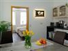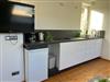 Die Küche mit Wohnbereich verfügt über alle notwendigen Kochutensilien z.B. Kühlschrank, Wasserkocher, Herdplatten, Töpfe, Teller, Tassen, Besteck usw. Diese sind in einer Einbauküche untergebracht. Außerdem können bis zu 2 Personen an den vorhandenen Tisch bequem das Essen vorbereiten und einnehmen.
