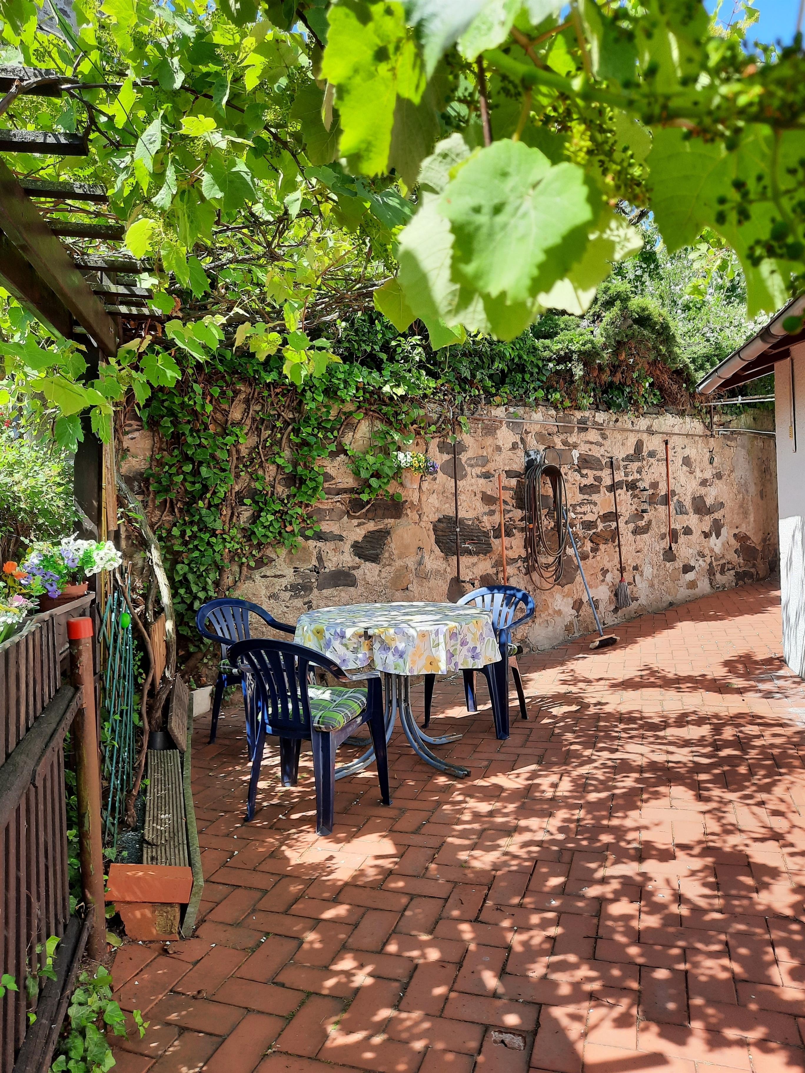 Oder verbringen Sie die Zeit unter einem Dach aus wilden Wein auf der Terrasse.