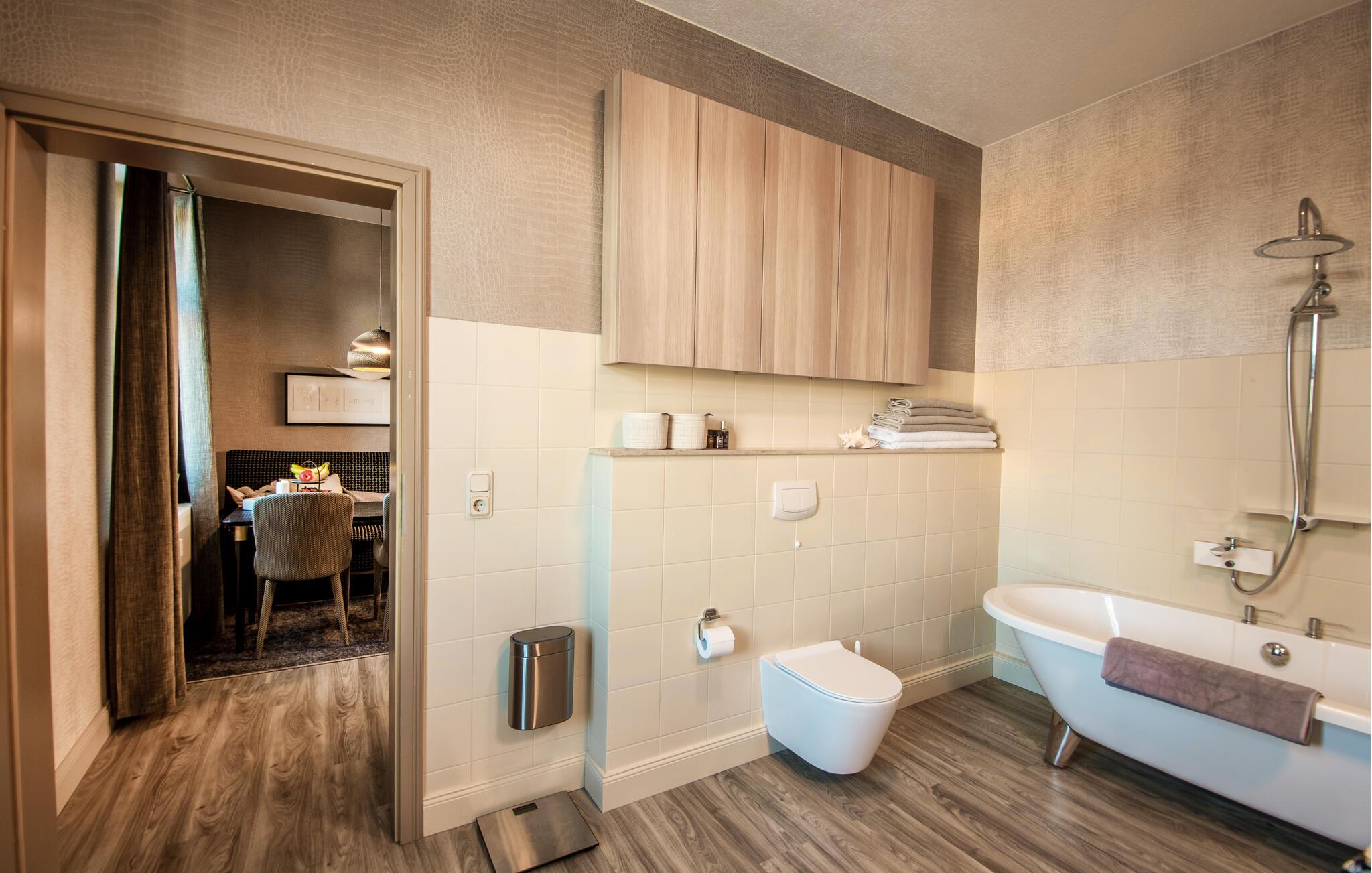 Badeværelse 8m2 (nr. 1) - WC. Varmt og koldt vand. Bruser og badekar