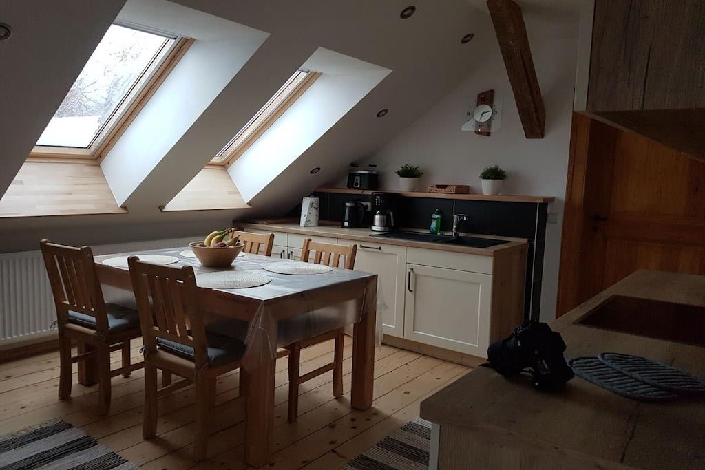 Nach einem langen Tag mit unzähligen Impressionen der Umgebung können Sie im großen Wohnzimmer auf unserer Eckcouch bei einem Roman oder einem guten Film entspannen oder über das Internet Ihre Erlebnisse mit ihren Freunden teilen. Wenn Sie gerne kochen, wird dies in unserer komplett ausgestatteten Küche zum Kinderspiel. Es ist alles vorhanden, um im Essbereich des Wohnzimmers ein zauberhaftes Frühstück, Mittag oder Abendessen zu servieren. Zum Ausklang eines erlebnisreichen Tages können Sie im hauseigenen Pub eines der zahlreichen Getränke probieren!