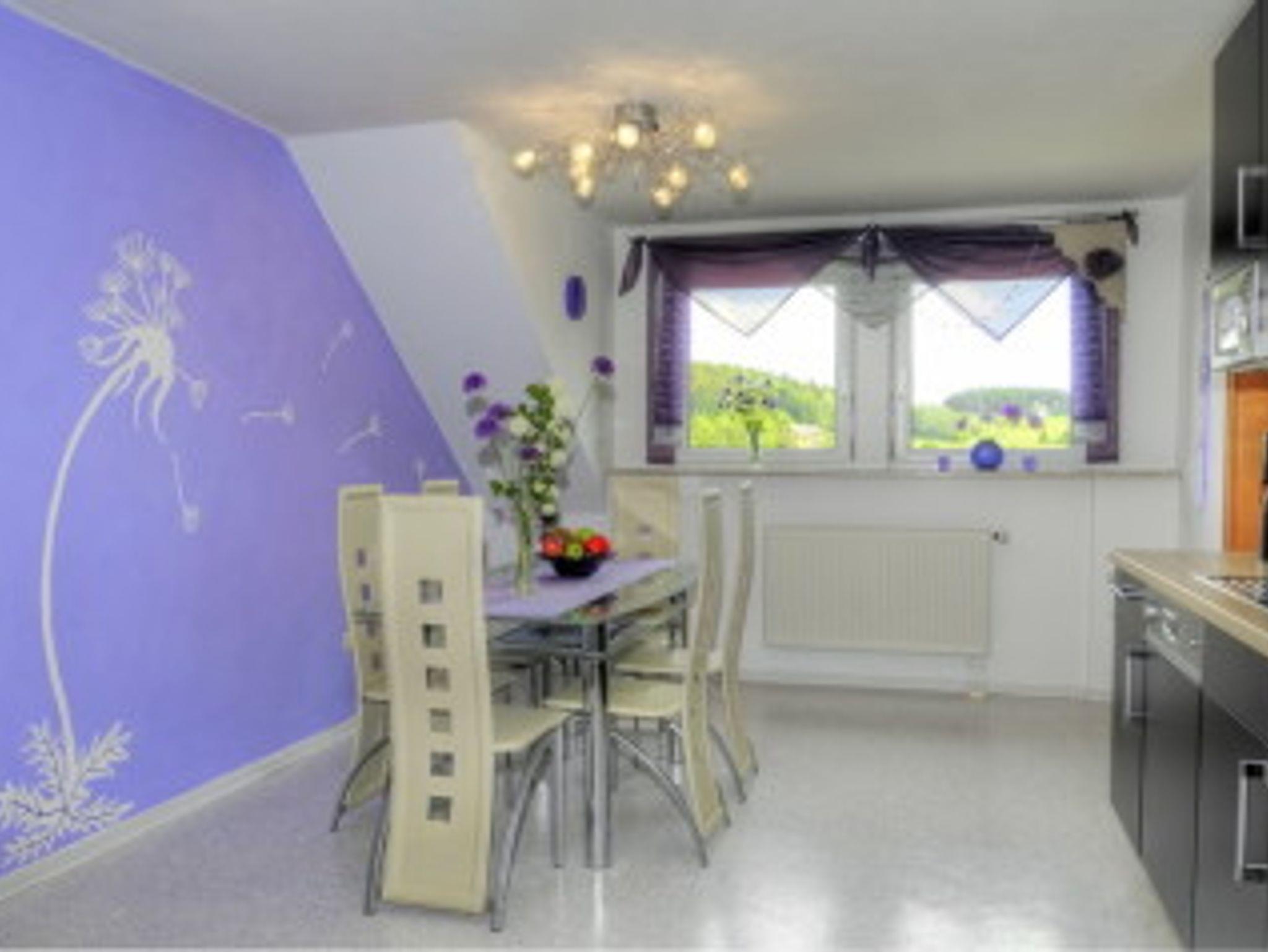 Unser Haus liegt 650m hoch in ruhiger, sonniger Lage mit herrlichem Panoramablick umgeben von saftigen, grünen Wiesen und viel Natur. Unsere Ferienwohnung mit einer Wohnfläche von 100 qm bietet Platz für bis zu 6 Personen. Über das geräumige Schlafzimmer mit Doppelbett gelangen Sie direkt auf den überdachten Balkon und können von dort die Abendsonne genießen. Im zweiten Schlafzimmer befindet sich ein Einzelbett, dass man als Doppelbett vergrößern kann. Das gemütliche Wohnzimmer lädt zu gemeinsamen Fernseh- oder Spieleabend ein. Hier befindet sich eine Schlafcouch für bis zu 2 Personen. Die moderne Küche verfügt über einen weiteren kleinen Frühstücksbalkon und einem Esstisch und ist mit Backofen, Herd, Geschirrspüler, Kühlschrank, Wasserkocher, Mikrowelle und Toaster ausgestattet. Das Badezimmer mit Dusche & Badewanne und das separate WC runden das Gesamtbild ab. Den Parkplatz am Haus und das WLAN nutzen Sie kostenfrei.
