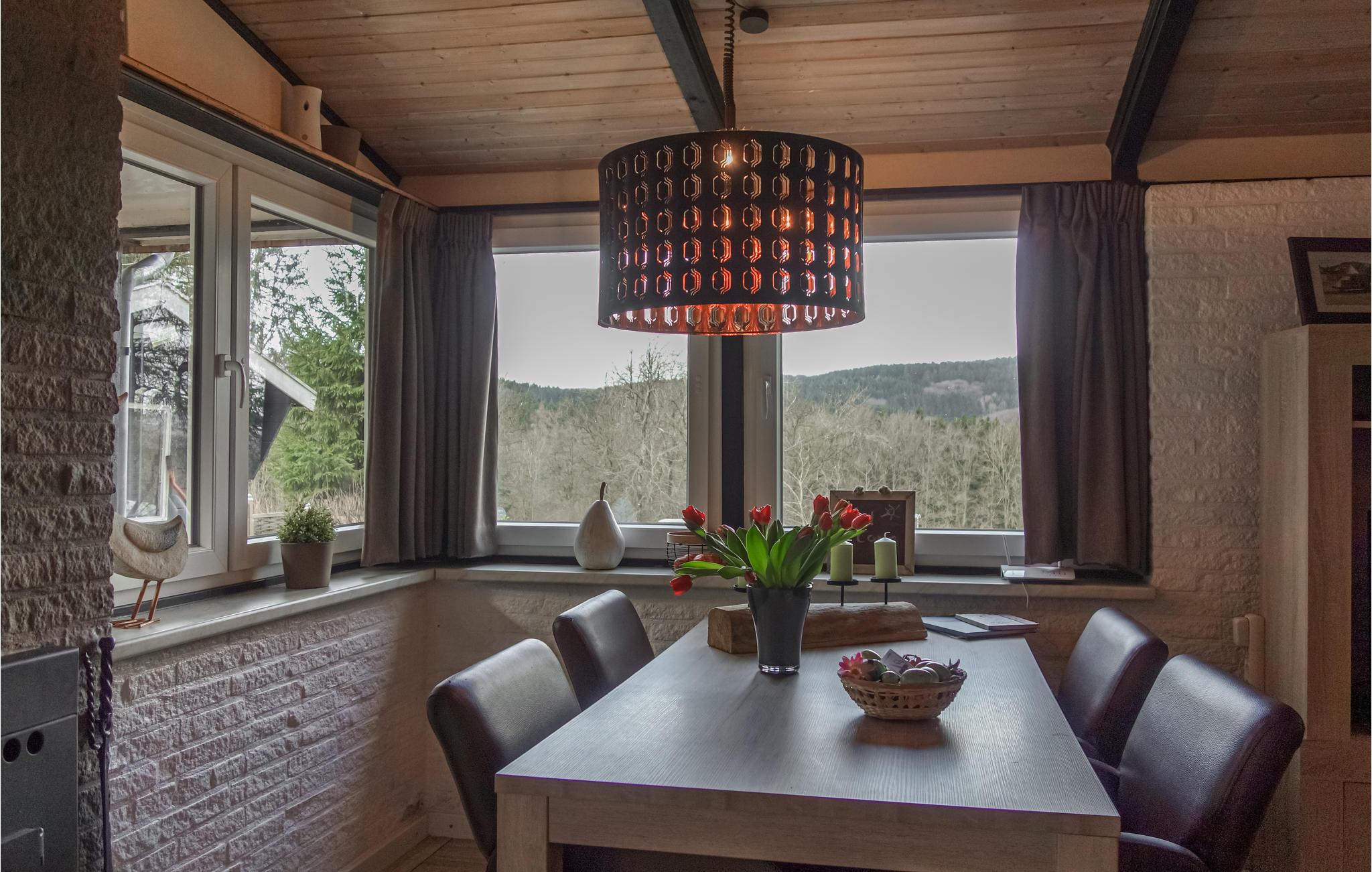 Velkommen til dette skønne hus, som har en speciel arkitektur. Ankom med jeres lille familie og føl jer hjemme her. Det er lige meget, om I vil lave mad sammen i køkkenet eller slappe af i stuen eller lege ved spisebordet. Fra begge værelser kan I nyde en fantastisk udsigt over det smukke landskab i Eifel. Huset er udstyret med alt, hvad I skal bruge til jeres afslappende ferie og også udendørs kan I nyde solen og jeres måltider på terrassen.