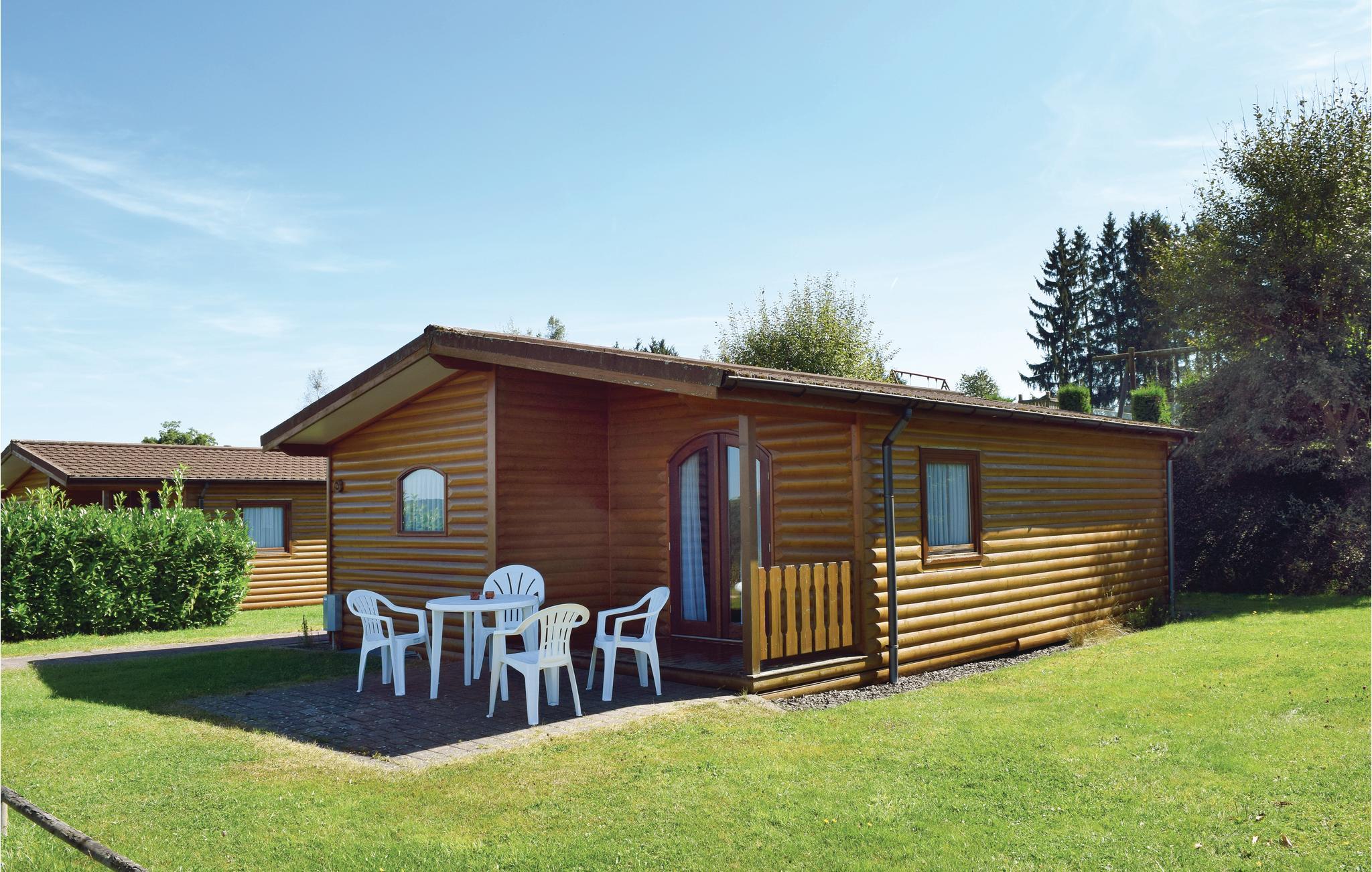 Dette fritstående feriehus med have og stor terrasse ligger i Gerolsteins skovferiepark midt ude i Eifelområdets skove. Ferieparken består af flere bungalows beliggende i byens udkant. Huset har to soveværelser med dobbeltsenge og en dejlighave med terrasse.