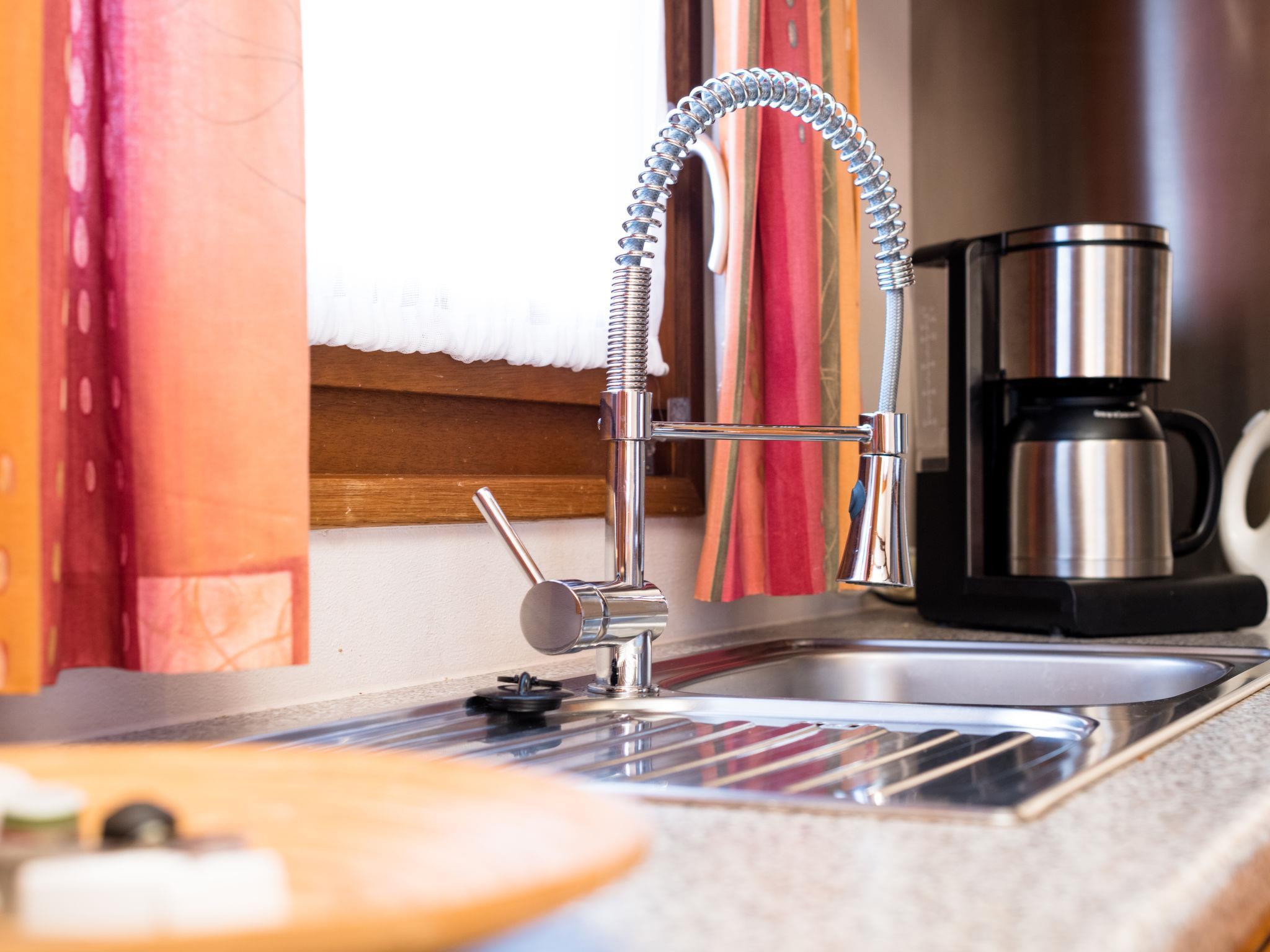 "Holzchalet A-D", 3-room bungalow 55 m2. Rustic and cosy furnishings: living/dining room 32 m2 with satellite TV (flat screen). Exit to the terrace. 1 room 6 m2 with 1 double bed (160 cm, length 190 cm). 1 room 6 m2 with 2 beds (80 cm, length 190 cm). Kitchenette (4 hot plates, dishwasher, kettle, microwave, electric coffee machine). Shower, sep. WC. Gas heating. Terrace 15 m2 partly roofed. Terrace furniture. Marvellous panoramic view of the mountains and the countryside. Facilities: baby cot (extra). Please note: non-smoking house. Maximum 2 pets/ dogs allowed. Smoke alarm, fire extinguisher. Four bungalows in wood construction. The pictures are only sample photos.
