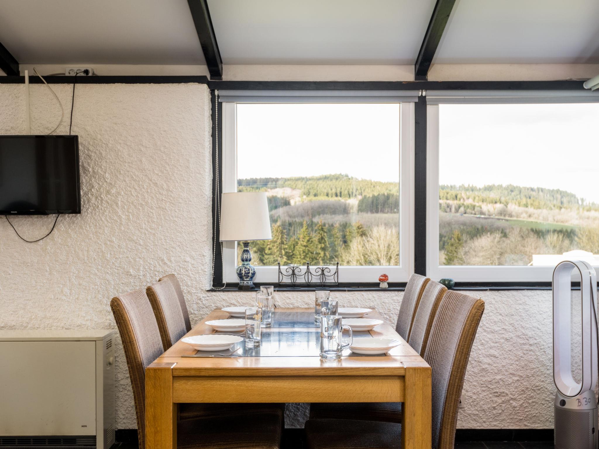 Resort "Waldferienpark Gerolstein". Outside the resort, 3 km from the centre of Gerolstein, in a secluded, quiet position on top of a hill, 100 m from the edge of the forest, 24 km from the lake, 100 m from the stream, in the countryside. For shared use: indoor pool heated (70 m2, depth 130 cm) with internal staircase. Shower/WC in the pool area, children's playground (slide, swing, sandbox), petting farm. Private: garden with lawn. In the complex: restaurant, bar, breakfast room, lounge, billiard table, trampoline, sun terrace. Bread roll service possible (extra). Stepped path to the house. Parking on the premises. Shop 3 km, grocery 2.5 km, supermarket 2.5 km, shopping centre 3 km, bicycle rental 6 km, bus stop "Gerolstein" 3 km, railway station "Gerolstein" 3 km, outdoor swimming pool 3 km, bathing lake 3.2 km. Golf course (18 hole) 18 km, tennis 3 km, minigolf 50 m, riding stable 4 km, walking paths from the house 50 m. Nearby attractions: Kylltal, Burg Eltz. Well-known lakes can easily be reached: Pulvermaar 24 km. Please note: car recommended. The forest holiday park also has air hockey and outdoor chess. Facilities for shared use (some extra). Wood for the fireplace in the properties can be purchased at reception for an additional charge.