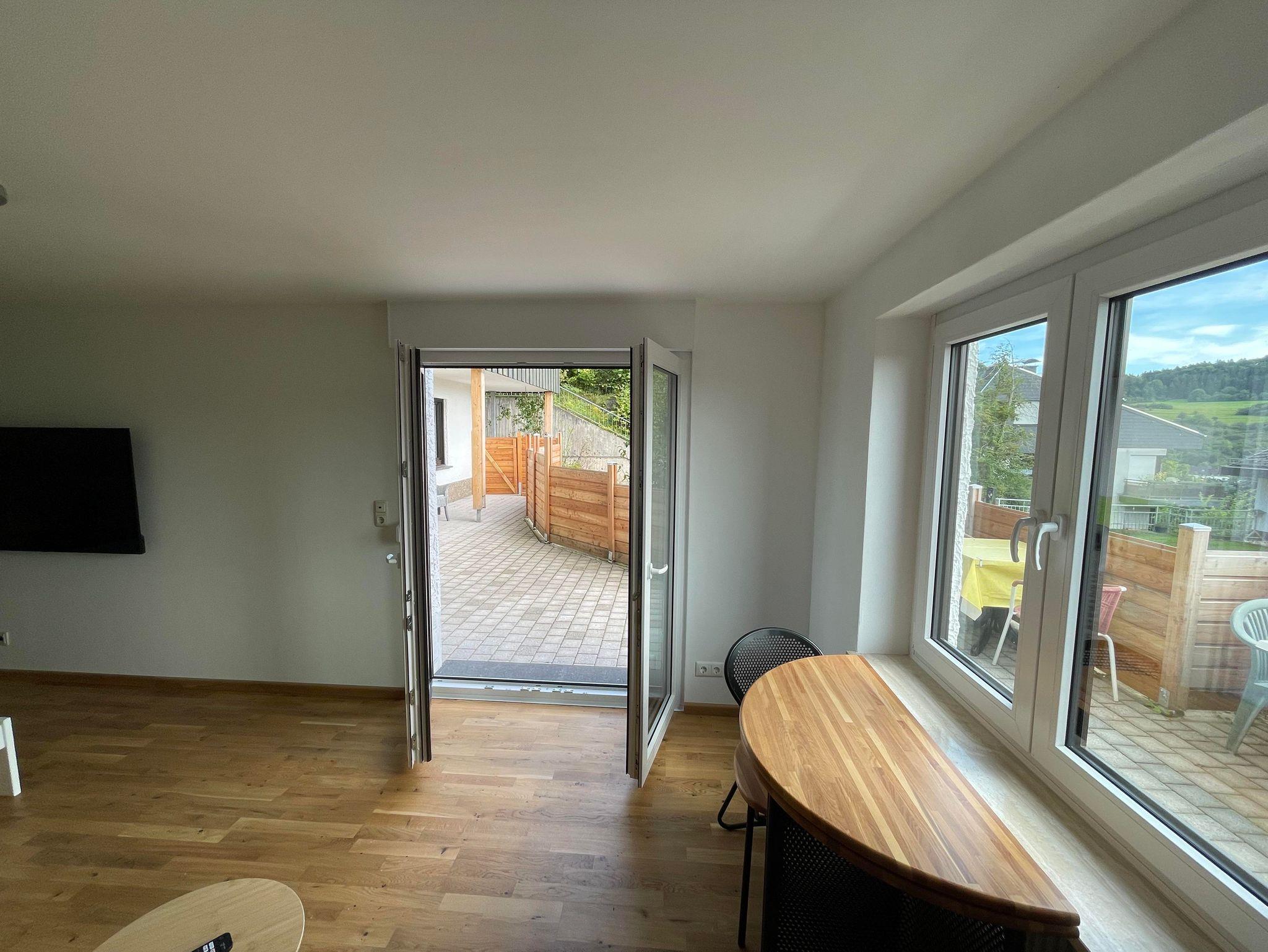 Haus mit 2xFeWo jeweils 90qm für jeweils bis zu 6 Personen. Direkt am Waldrand und Naturschutzgebiet gelegen, Eifelsteig-Wanderweg und Kletterfelsen 200m von Haus. Der Gerolsteiner Bahnhof und die Stadtmitte/Kinderwasserspielplatz jeweils 600m bzw 800m vom Haus entfernt. Öffentliches Freibad 1km von Haus entfernt.