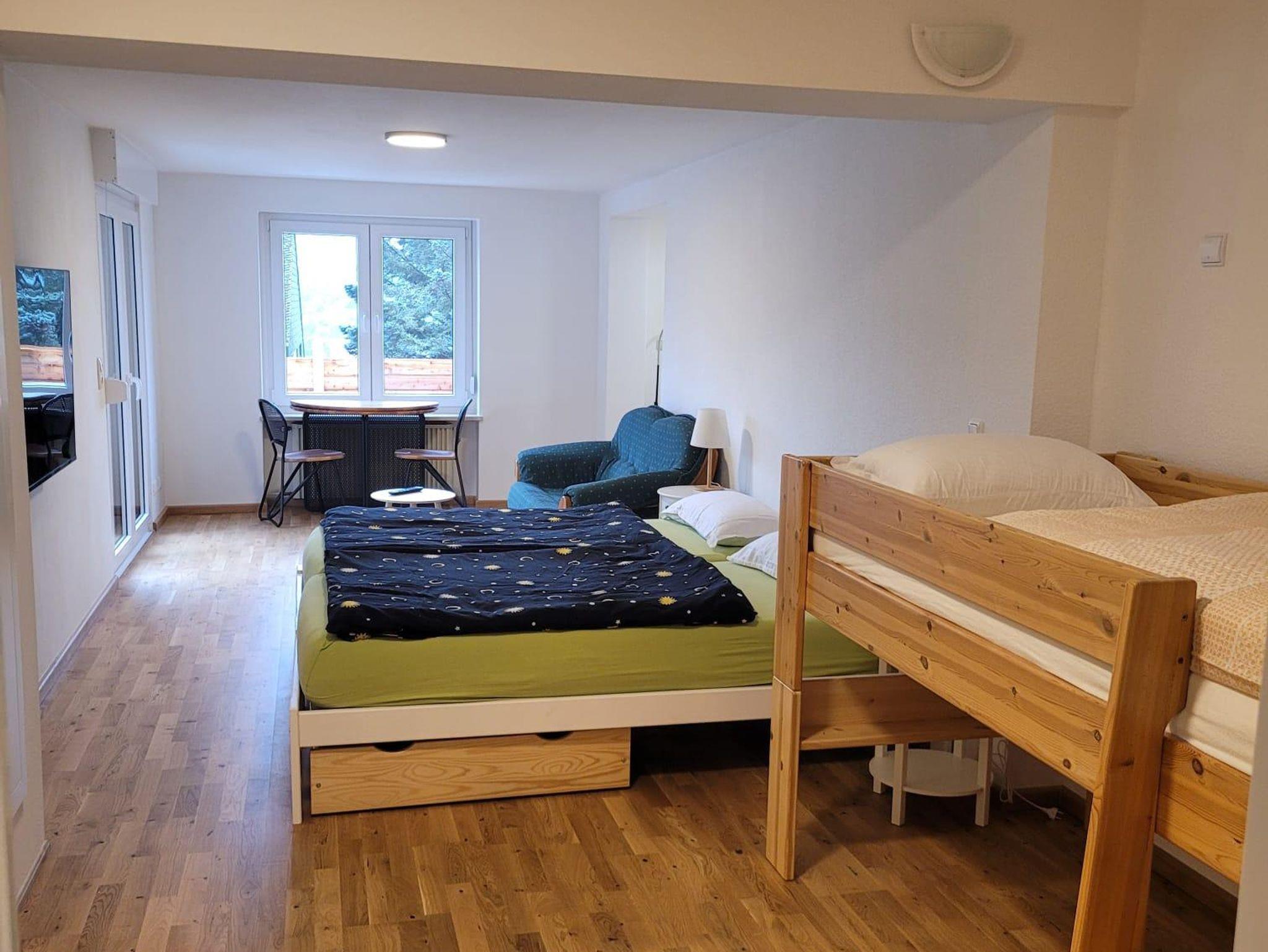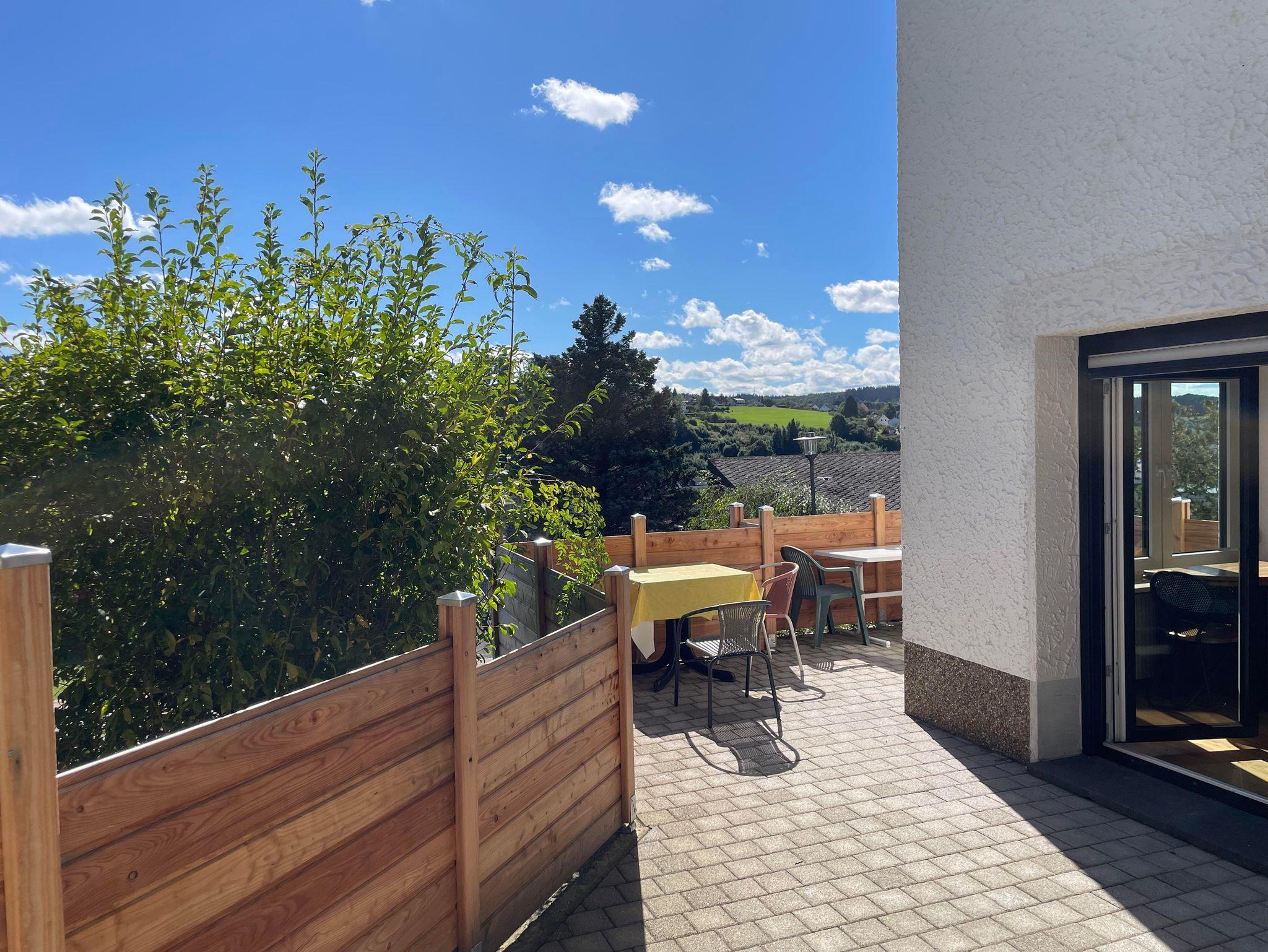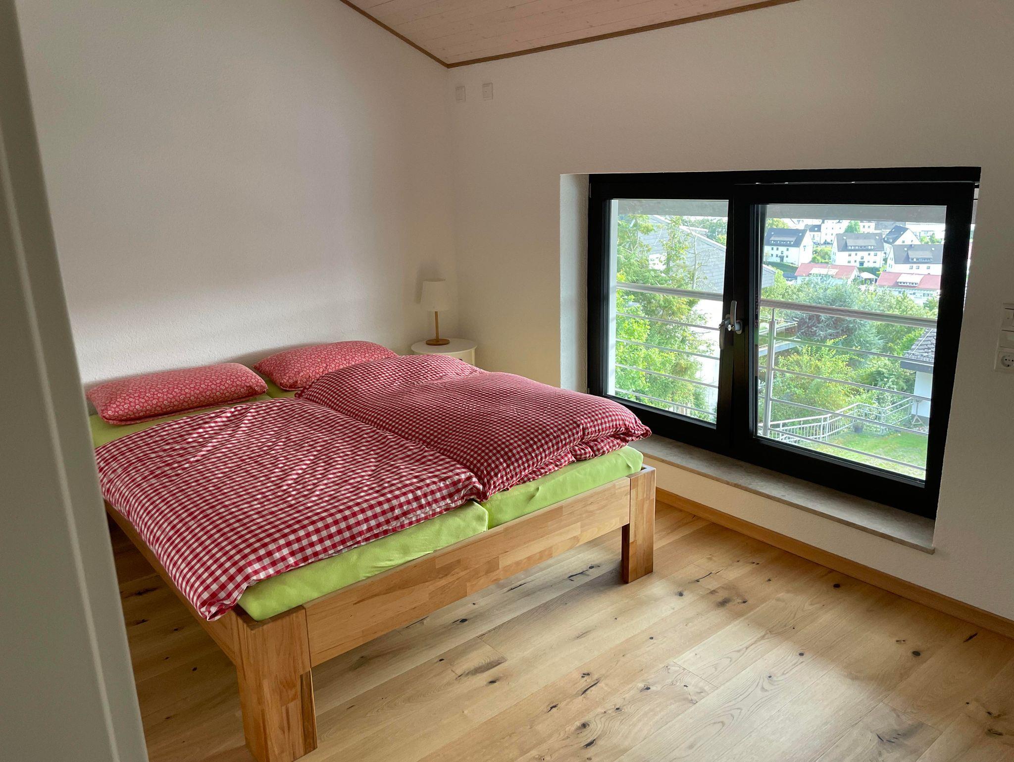 Dreifelsenblick Ferienwohnung Erdgeschoss (>90qm): 2xSchlafzimmer, SZ1 mit einmal Doppelbett (180cmx200cm), SZ2 mit 1xDoppelbett (180cmx200cm) und 1xEinzelbett (90cmx190cm) und 1xHochbett (90cmx200cm), Wohnküche mit Herd/Backofen und Kühlschrank und Geschirrspüler, Terrasse, Badezimmer mit Dusche und Waschmachine und WC, zweites separates WC, 2xFernseher in Wohnküche und in SZ2, insgesamt geeignet für bis zu 6xPersonen (empfohlen für z.B. 2xErwachsenen plus bis zu 4xKinder, oder für bis zu 4xErwachsene +/-Kinder), Erdgeschosswohnung gut geeignet für Familien mit Kindern, Freundesgruppen, Sportler, FeWo-Erggeschoss auch gut geeignet für Kleinkindern/Baby, überdachter Abstellplatz für Kinderwagen oder Fahrräder vorhanden, in Erdgeschosswohnung ist Hund erlaubt, Nichtraucherferienwohnung, Rauchen in Erdgeschosswohnung auf Terrasse gestattet