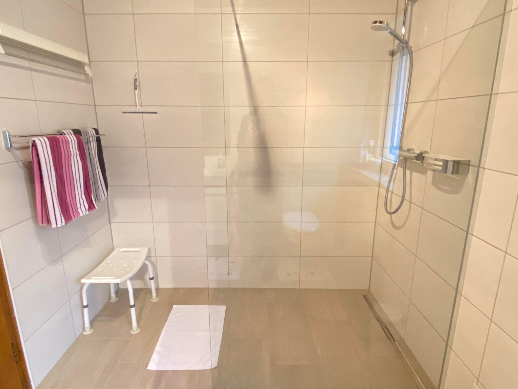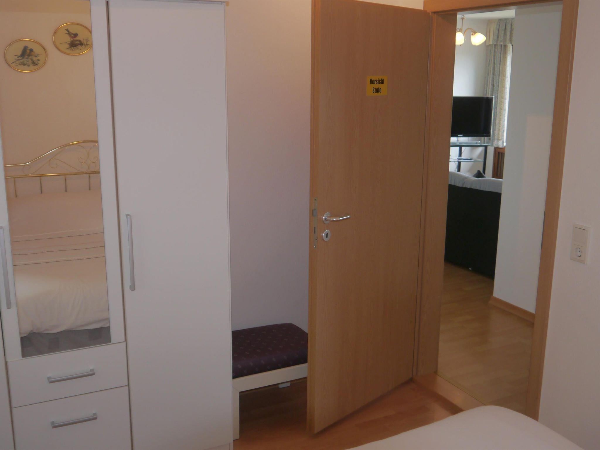 Das Appartement verfügt über zwei Doppelzimmer und ein Wohnzimmer mit windgeschütztem Südbalkon und tollem Blick auf die Brunnenstadt. Das Badezimmer verfügt über Dusche/WC.