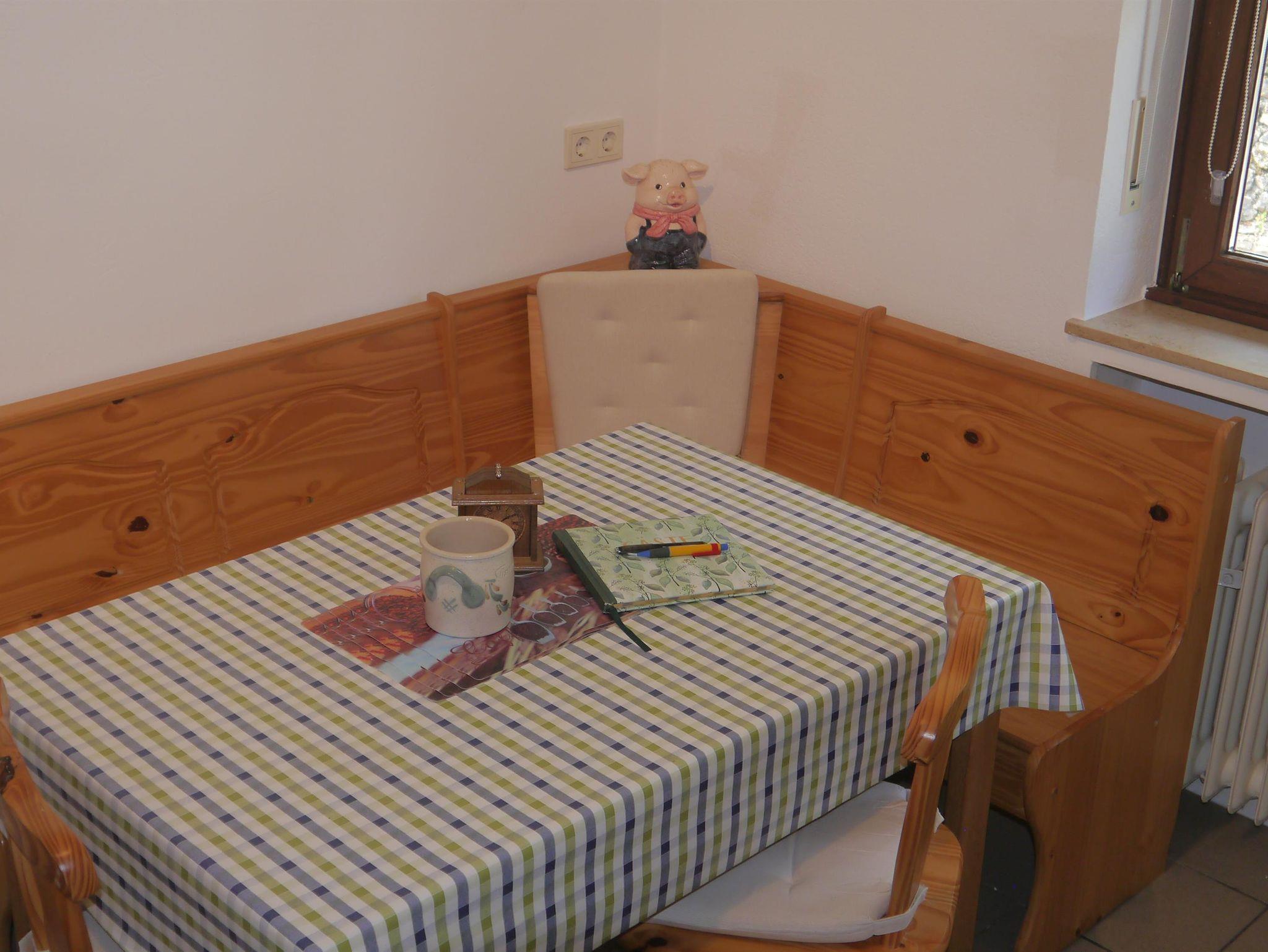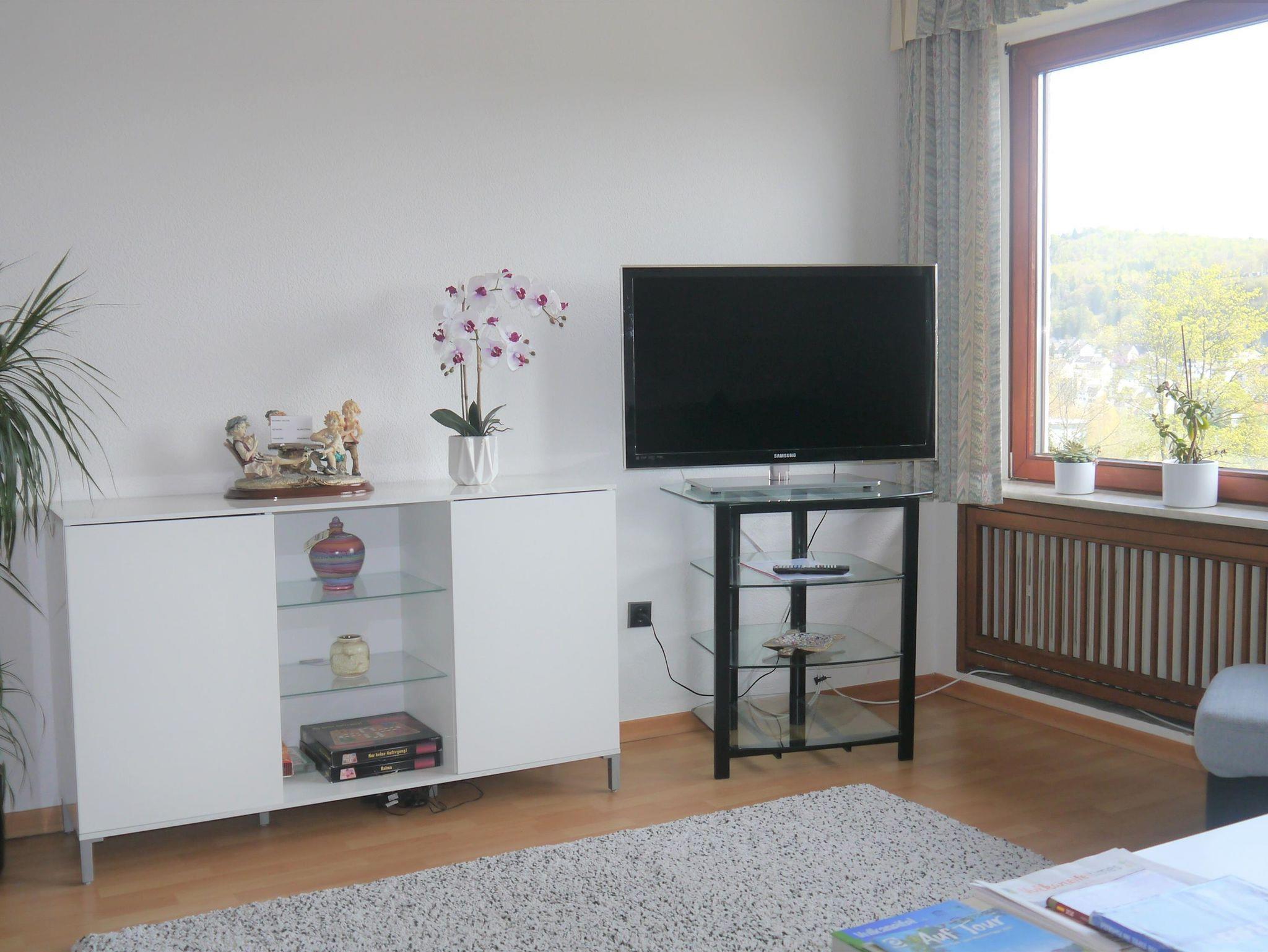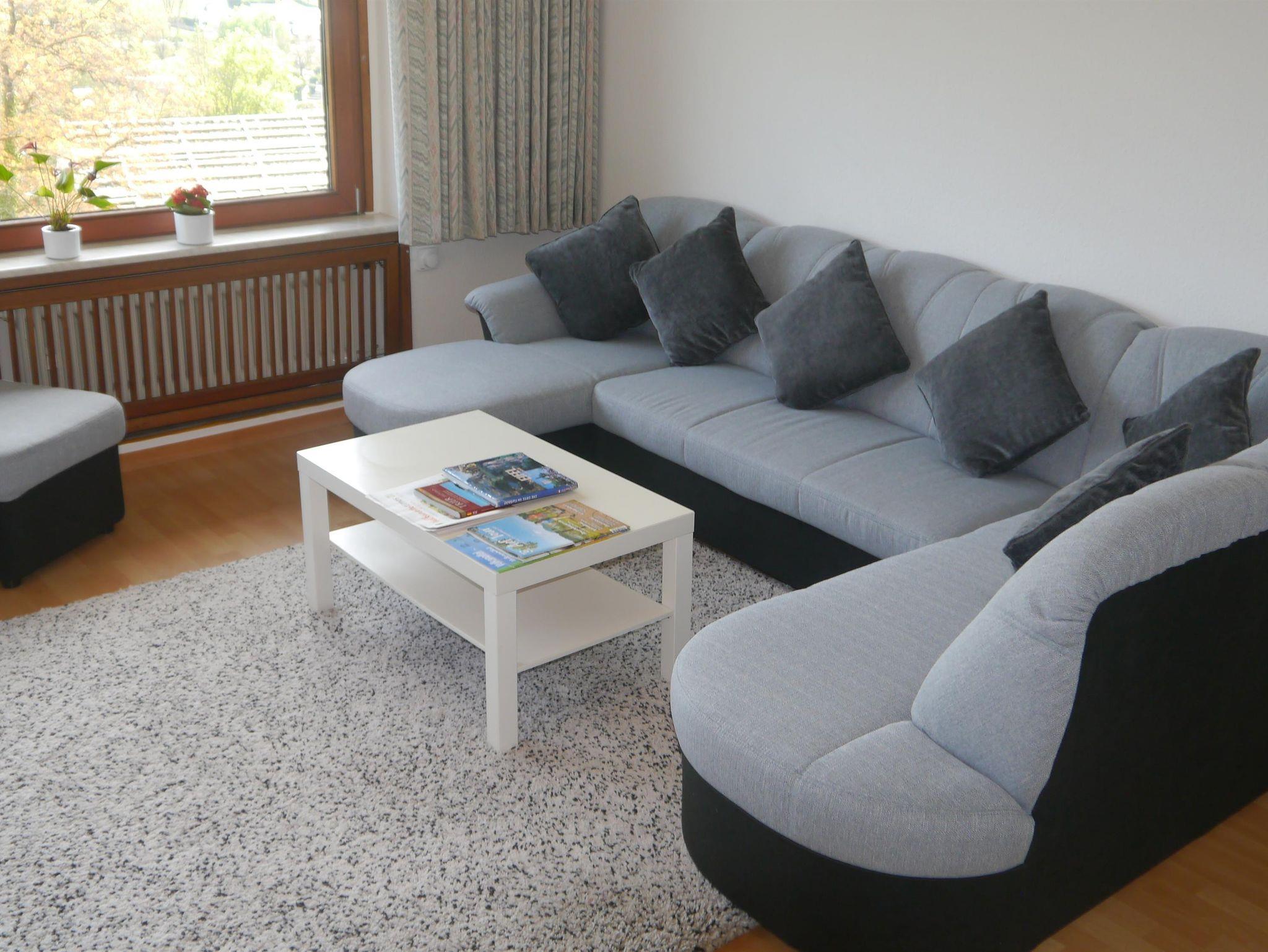 Die große, moderne Einbauküche mit Esstisch lädt ein zum gemeinsamen Kochspass. Im Wohnzimmer können Sie mit einem fantastischen Panoramablick auf Gerolstein herrlich entspannen, ein Flachbildschirm mit SAT-Anschluss garantiert gewohnten Fernsehgenuss. Auf Wunsch halten wir darüber hinaus eine Auswahl an spannender Lektüre und Gesellschaftsspielen für Sie bereit.