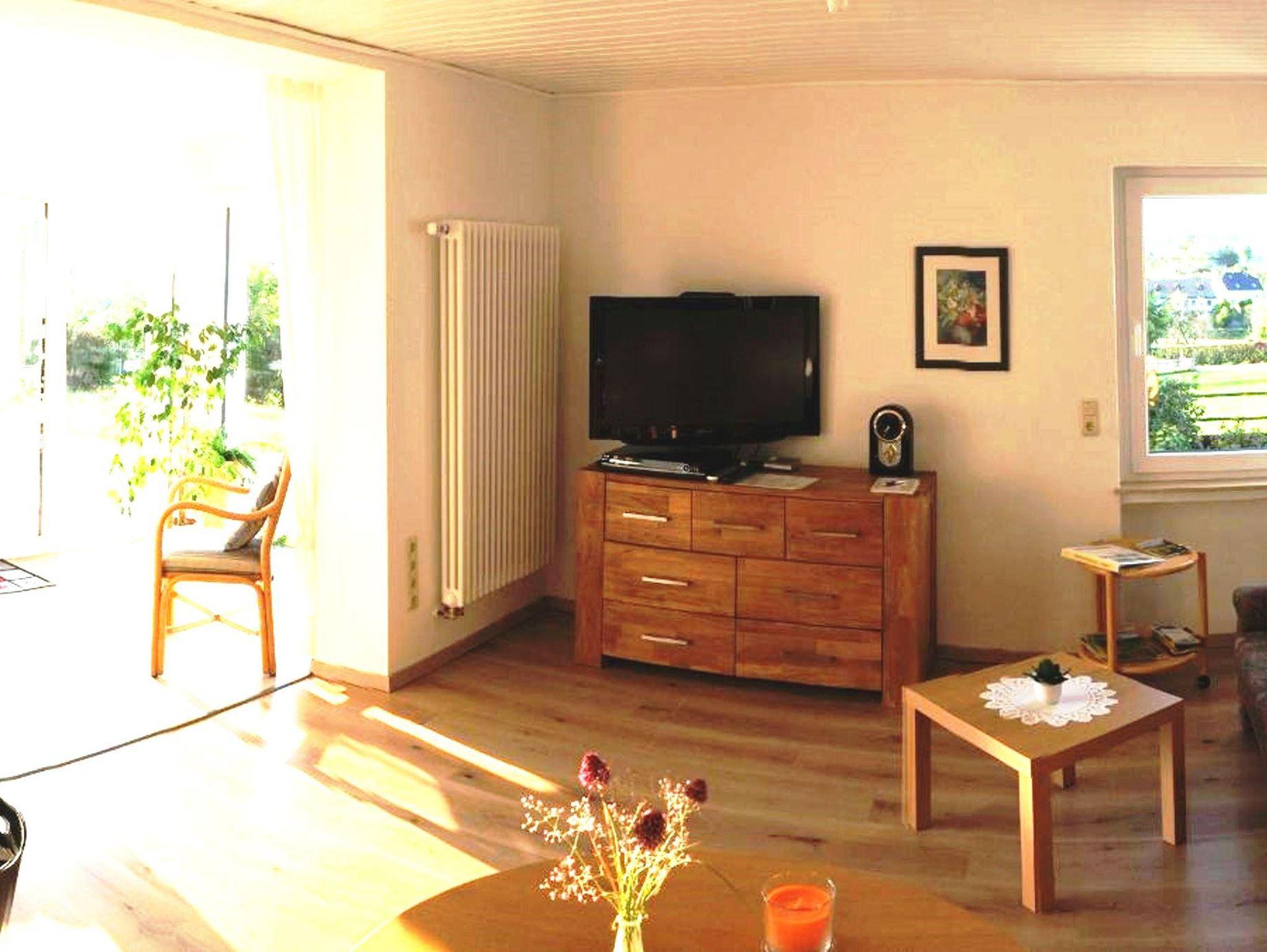 Die 65 qm große Nichtraucher-Ferienwohnung Wald und Wiese liegt im liebevoll renovierten Untergeschoss unseres Wohnhauses. Sie verfügt über einen eigenen ebenerdigen Eingang, eine Terrasse und einen PKW-Stellplatz.