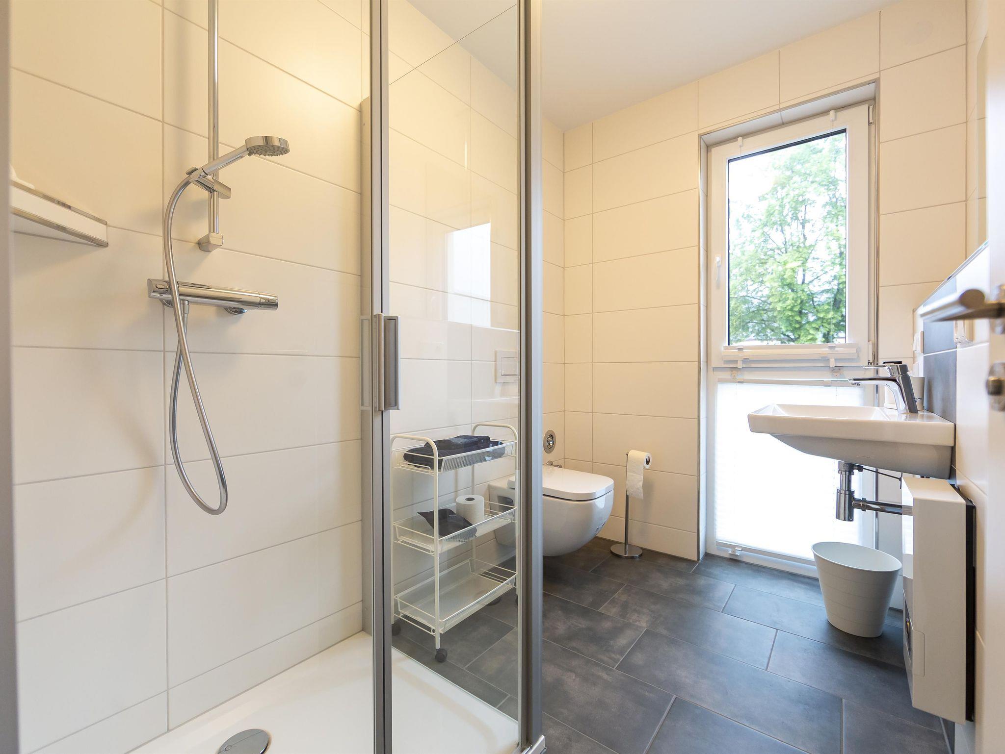 Geräumige 46 m² Unterkunft für 4 Personen, Schlafzimmerblick auf Kirche, Balkonblick auf Gersfeld. Lichtdurchflutet, mit Boxspringbett (2 Personen) und komfortablem Schlafsofa (2 Personen). Gut ausgestattete Küche mit Herd, Spülmaschine, Kaffeemaschine, Wasserkocher, Toaster, Backofen. Badezimmer mit Dusche, Föhn vorhanden. Wohnzimmer mit 43-Zoll TV, elektrische Rollläden. Geschirr für 6 Personen. Aufzug verfügbar.