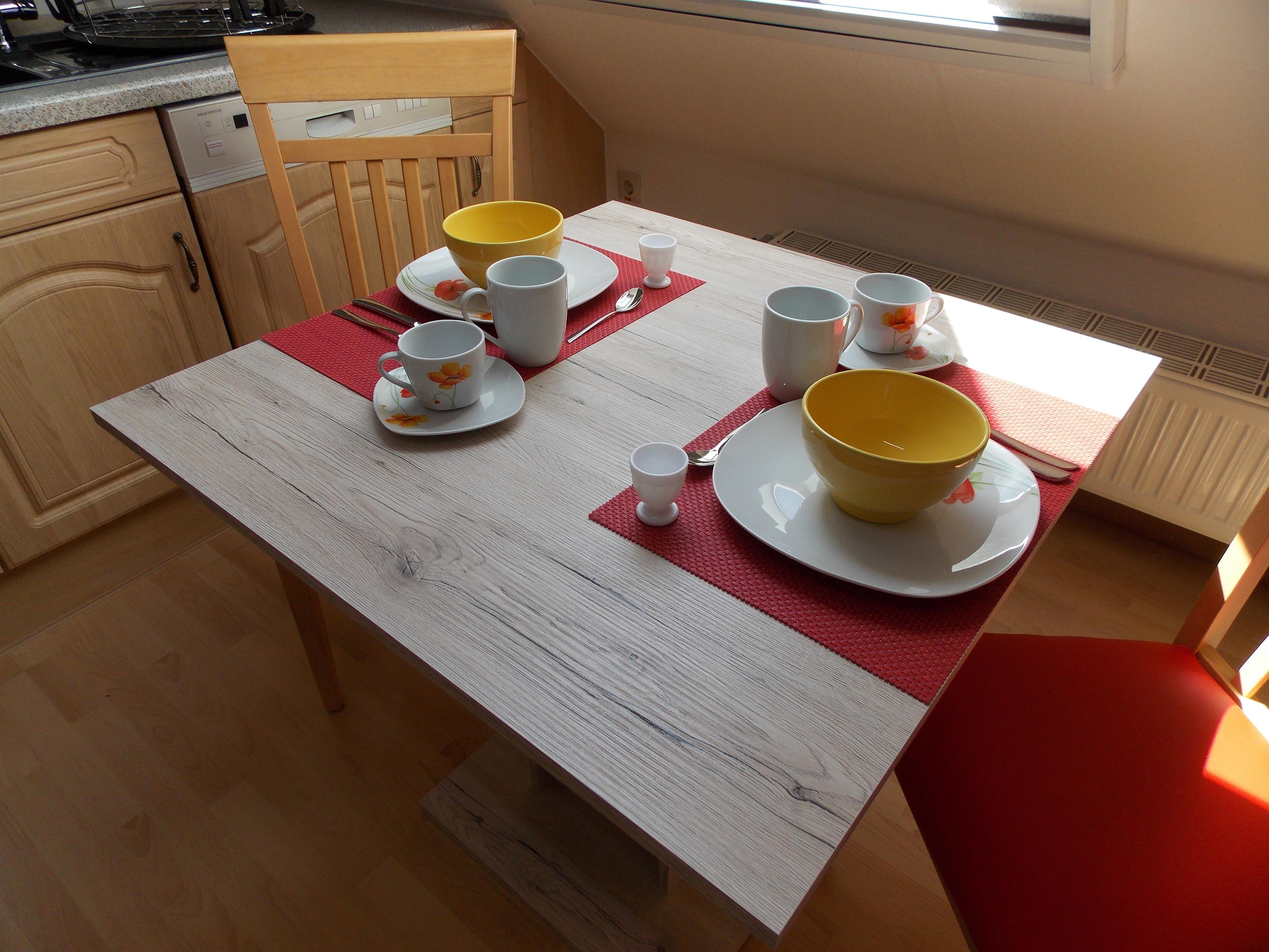 Ausstattung Landhausküche: Essplatz, Kühlschrank, Tiefkühlschrank, Kaffeemaschine, Toaster, Wasserkocher, Küchenradio, Einbauspüle, E-Herd, Geschirrspüler, Abfallbehältnisse zur Mülltrennung, Sonnen- und Insektenschutzplissee, Dinge für den täglichen Hausgebrauch (Töpfe, Pfannen, Geschirr, Besteck, Schneidbretter, Staubsauger etc.), Küchenwäsche (Erstausstattung) ist vorhanden und inklusive.