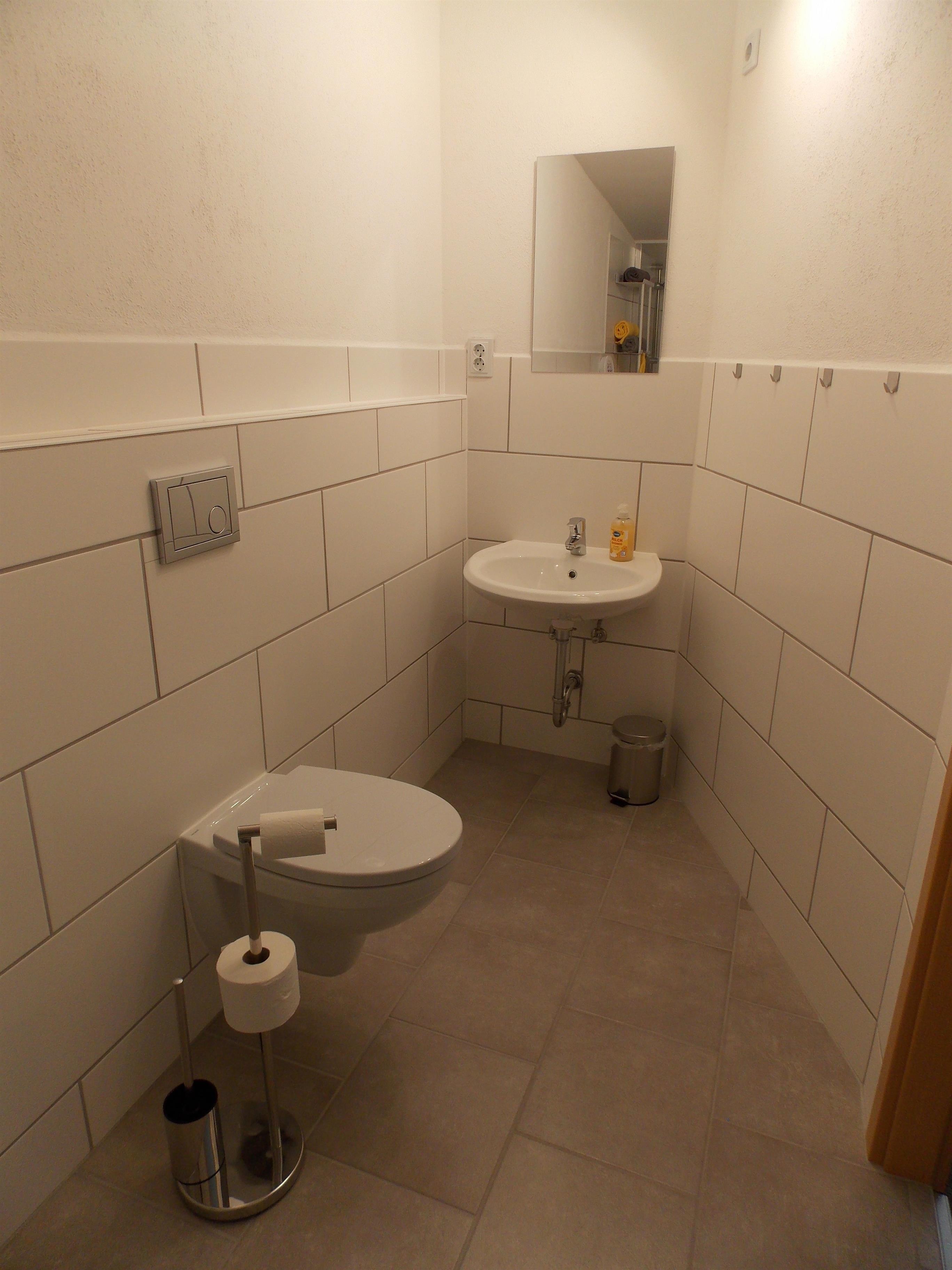 - Bad mit Dusche, Waschbecken und WC