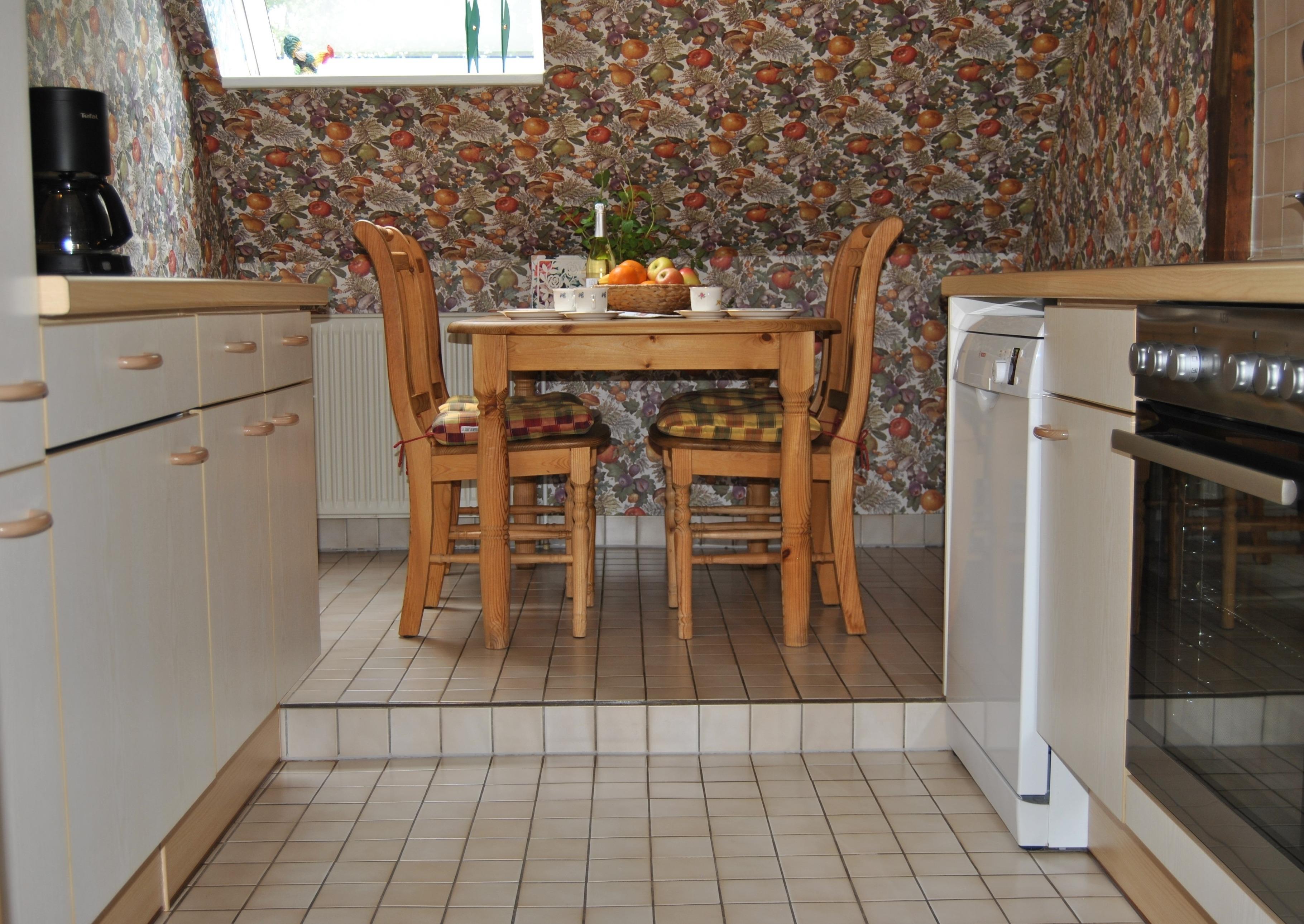 Die Küche ist separate gelegen und vollausgestattet. Eine Essecke rundet die Ferienunterkunft ab.