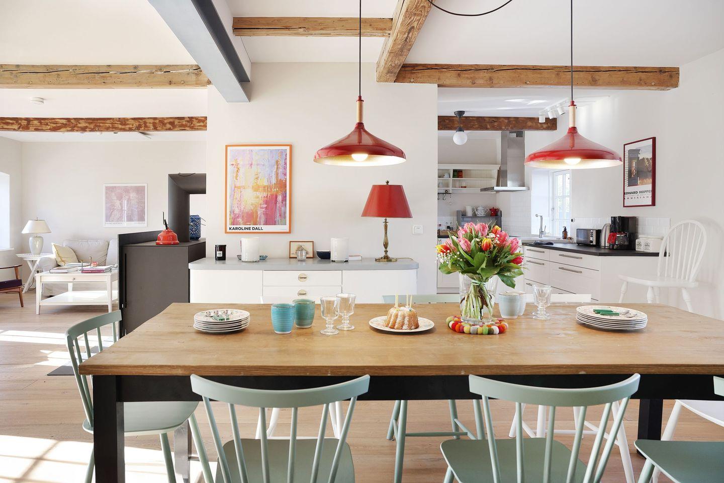 Das Haus bietet viel Platz und Rückzugsmöglichkeiten für 9 Personen. Die Wohnküche eignet sich ideal zum gemeinsamen Kochen. Der großzügige Esstisch bietet 10 Personen Platz – und den Raum für lange Spieleabende.