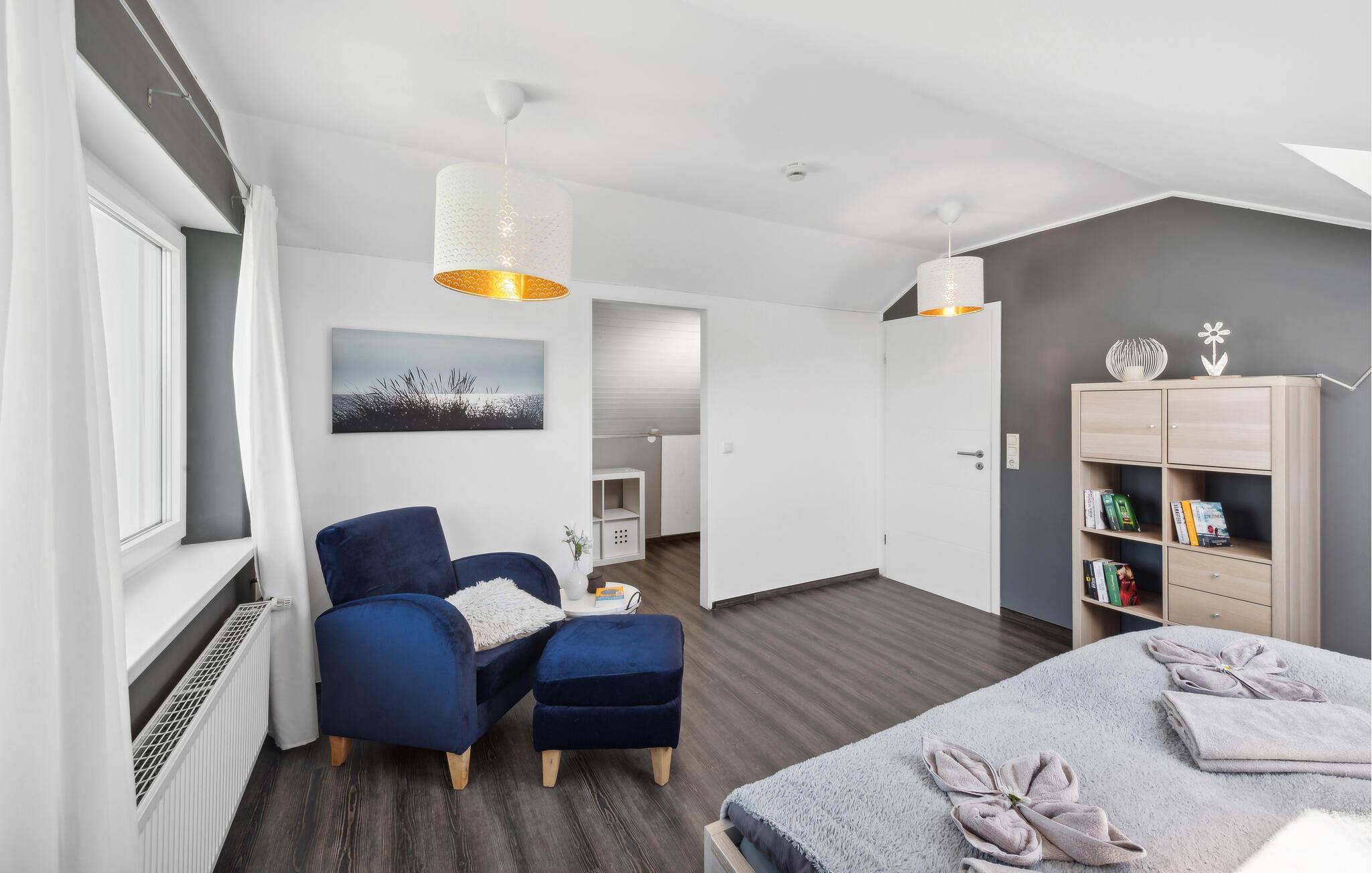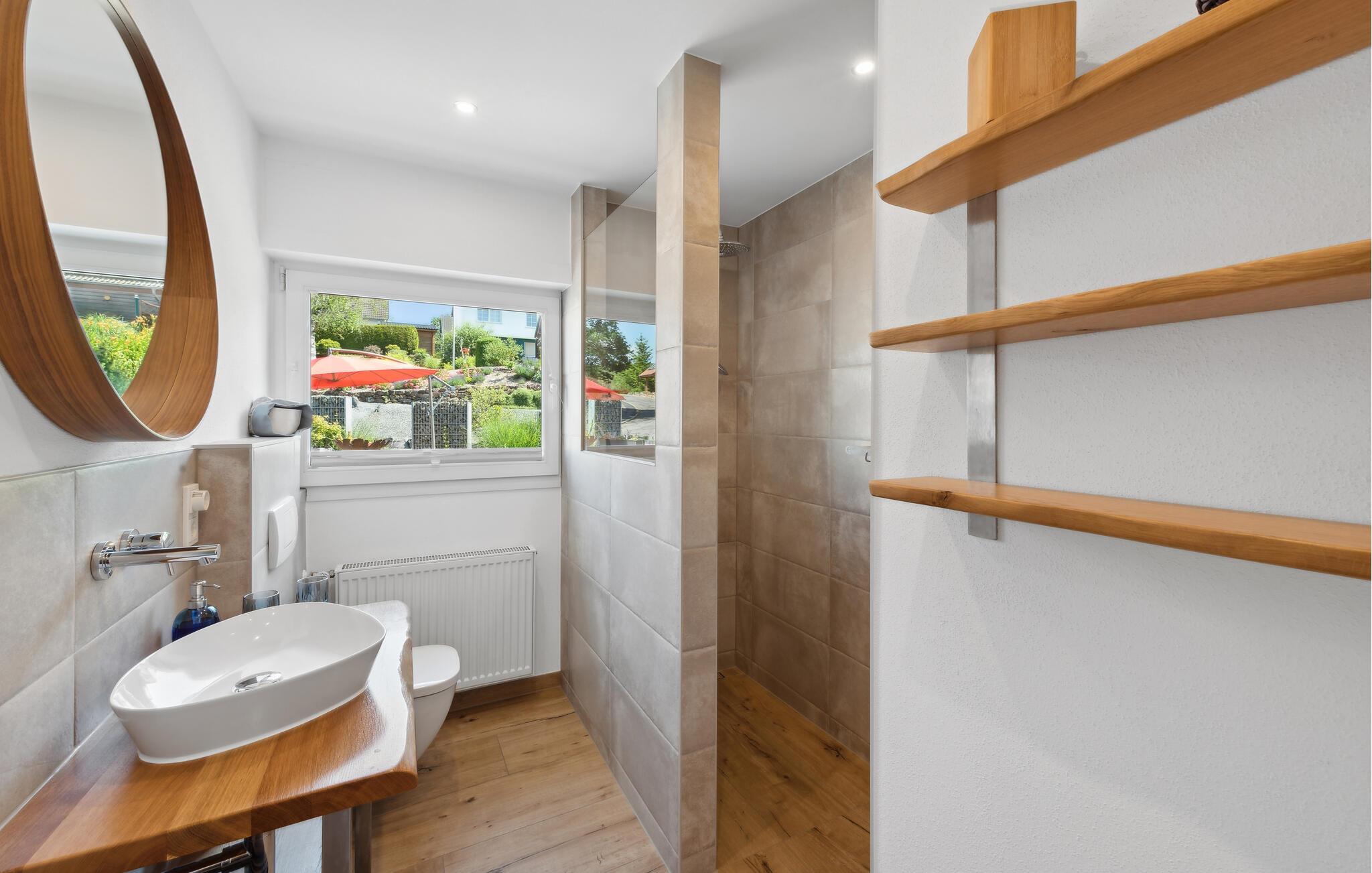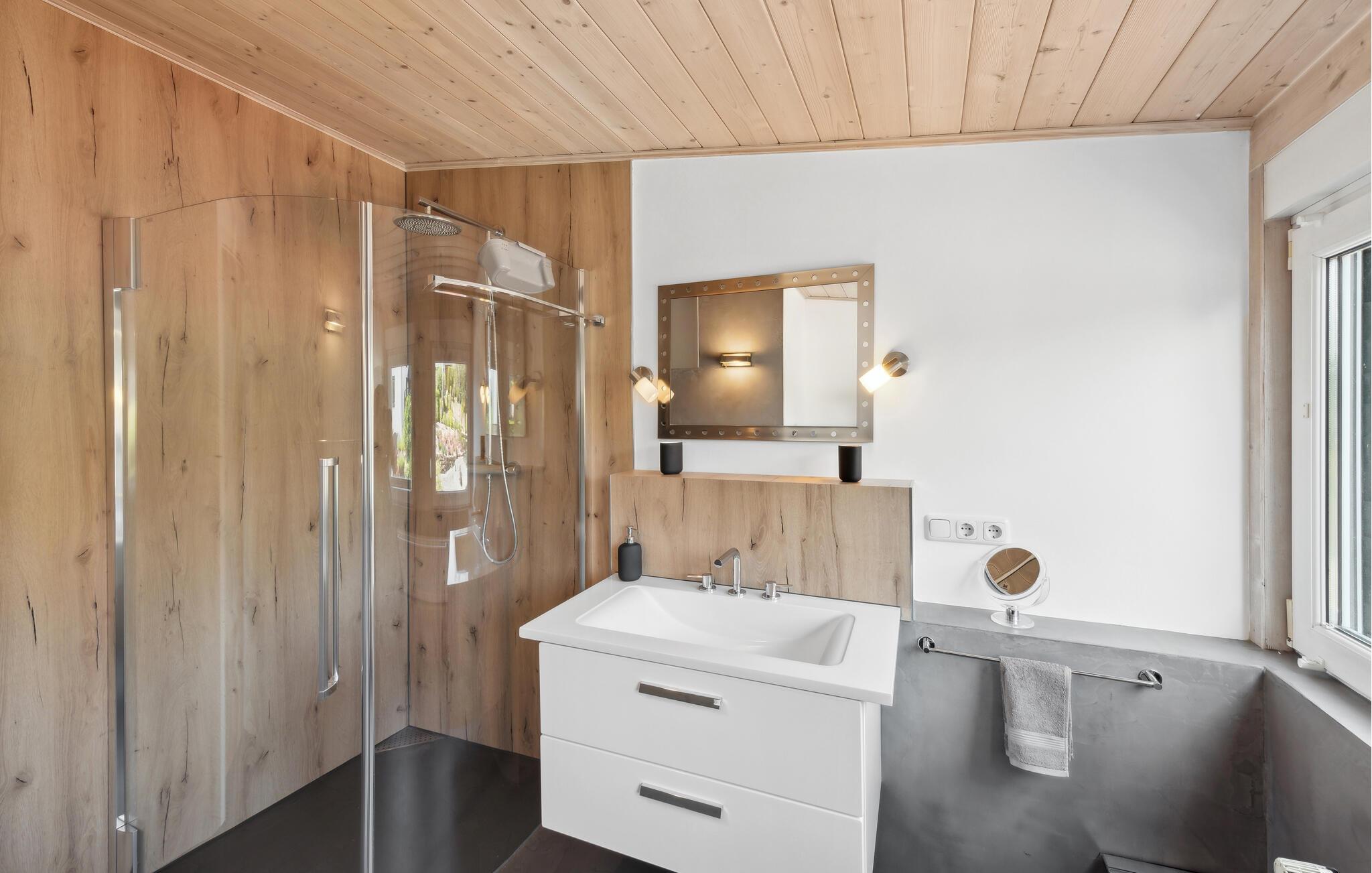 Denne rummelige og komfortable ferielejlighed i Gillenfeld lægger op til en afslappende ferie midt i den idylliske Eifel. Den lyse indretning, kombineret med moderne design, har en hyggelig atmosfære, hvor I straks vil føle jer hjemme. Nyd den store mængde plads og find jeres yndlingssted, uanset om I ser en film i stuen, leger ved spisebordet eller vågner op i sengen med panoramaudsigt over landskabet.