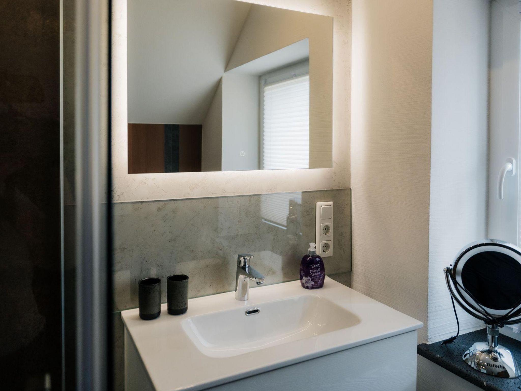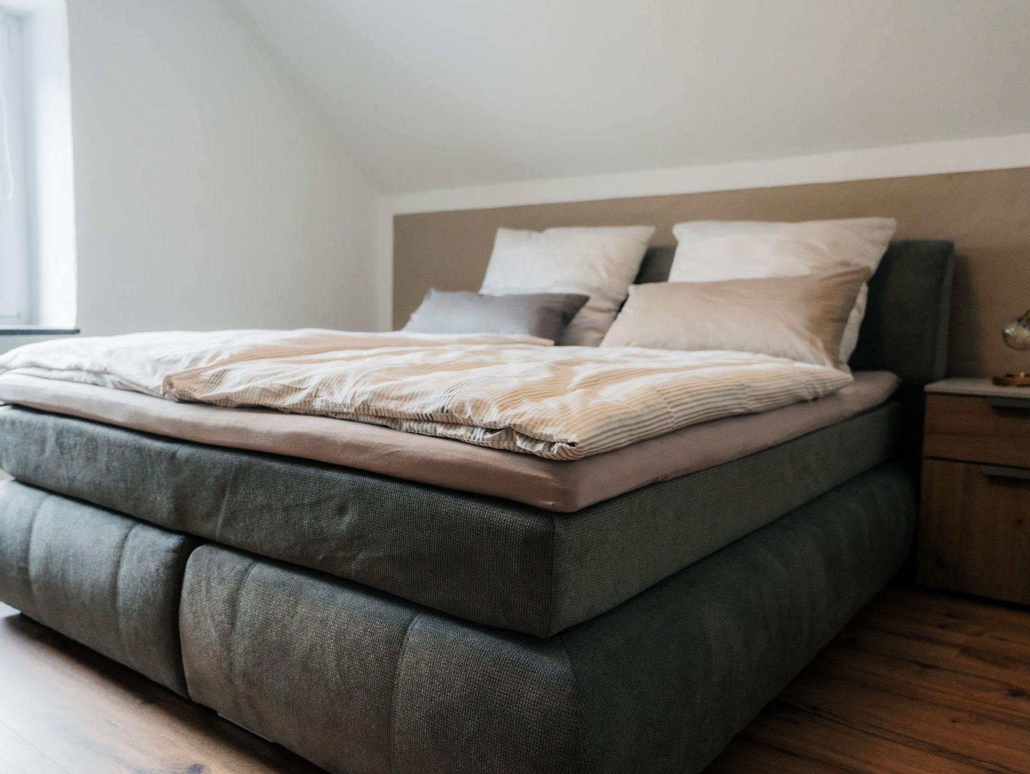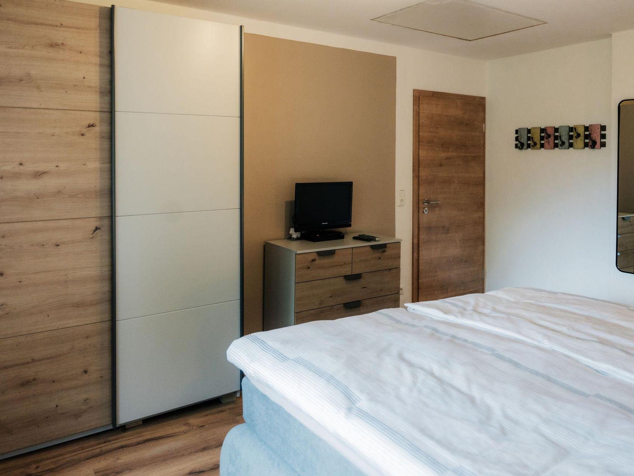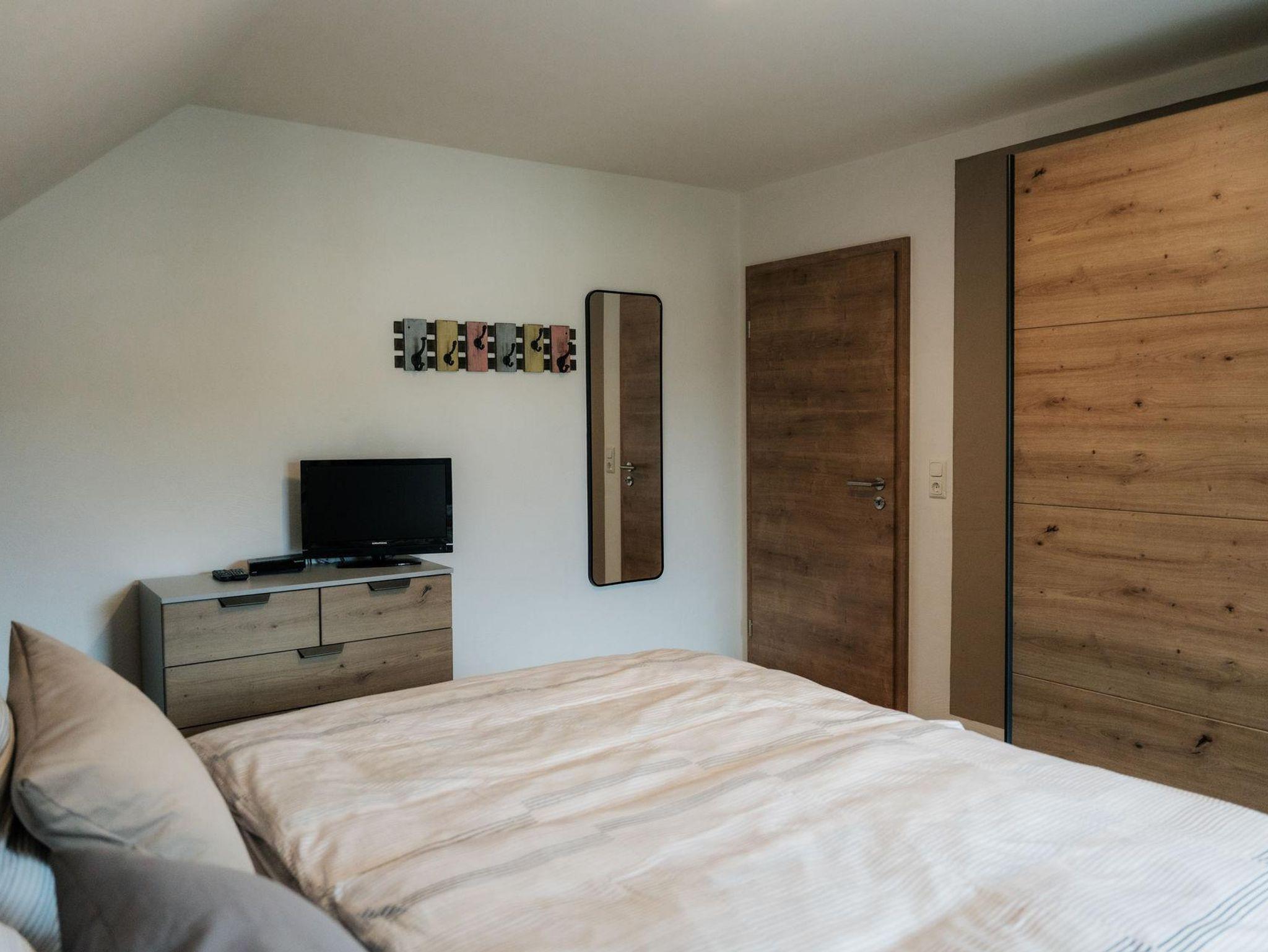 Auf der 1. Etage befinden sich, neben dem Bad, die zwei Schlafzimmer. Diese verfügen über zwei gemütliche, neue Boxspringbetten und bieten einen sehr hohen Schlafkomfort. Bei Bedarf stehen zwei Reisebetten kostenlos für Kinder bis ca. 3 Jahre zur Verfügung. Die Ausstattung der Schlafzimmer beinhaltet weiterhin jeweils einen kleinen Fernseher, eine Kommode und einen geräumigen Kleiderschrank. Das 2. Badezimmer im Obergeschoss bietet zusätzlich eine Badewanne.