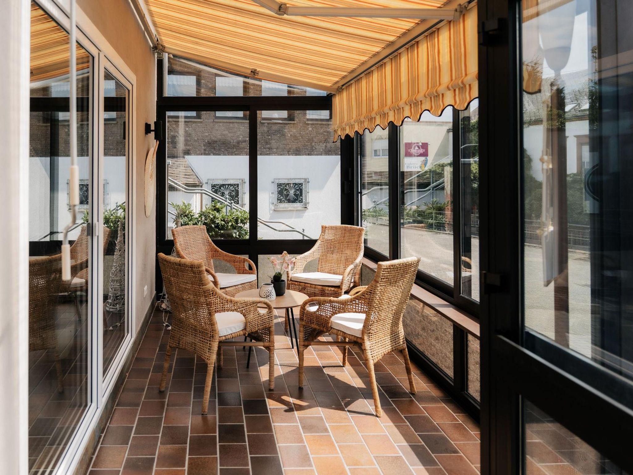 Im Erdgeschoss befindet sich, unmittelbar am Eingangsbereich auf der Ostseite gelegen, ein ca. 12 qm großer Wintergarten mit direktem Zugang zum Wohnzimmer.