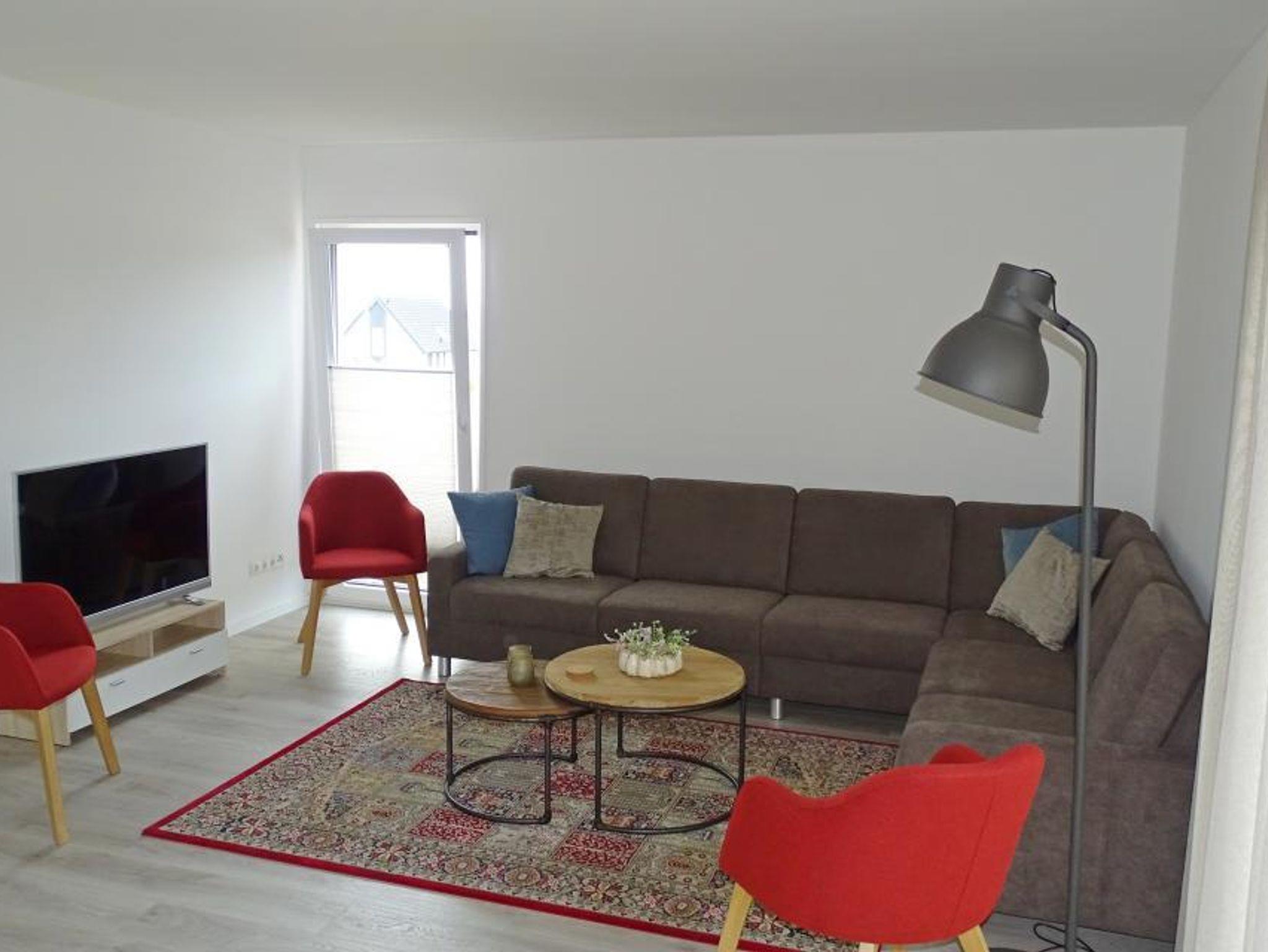 Das Wohnzimmer verfügt über eine Sitzecke mit einem großzügigen 7-Personen-Ecksofa, drei schönen zusätzlichen Stühlen, Breitbild-TV und einem großzügigen Essbereich mit großem Esstisch für die ganze Familie.
