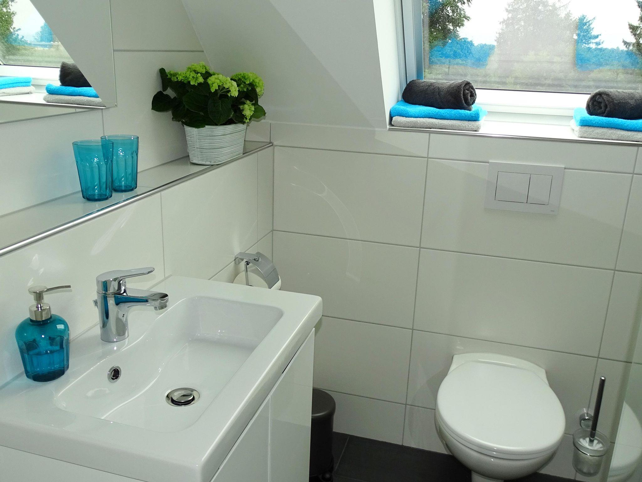 Schönes, geräumiges Ferienhaus für 6 Personen in Gillenfeld, mit großem Wohnzimmer und Küche im Erdgeschoss. Im 1. Stock 2 Schlafzimmer mit 2 Bädern und 2 Kleine Schlafzimmer mit ein Einzelbett . Draußen haben Sie eine private Auffahrt und einen umzäunten Garten mit großer Terrasse.