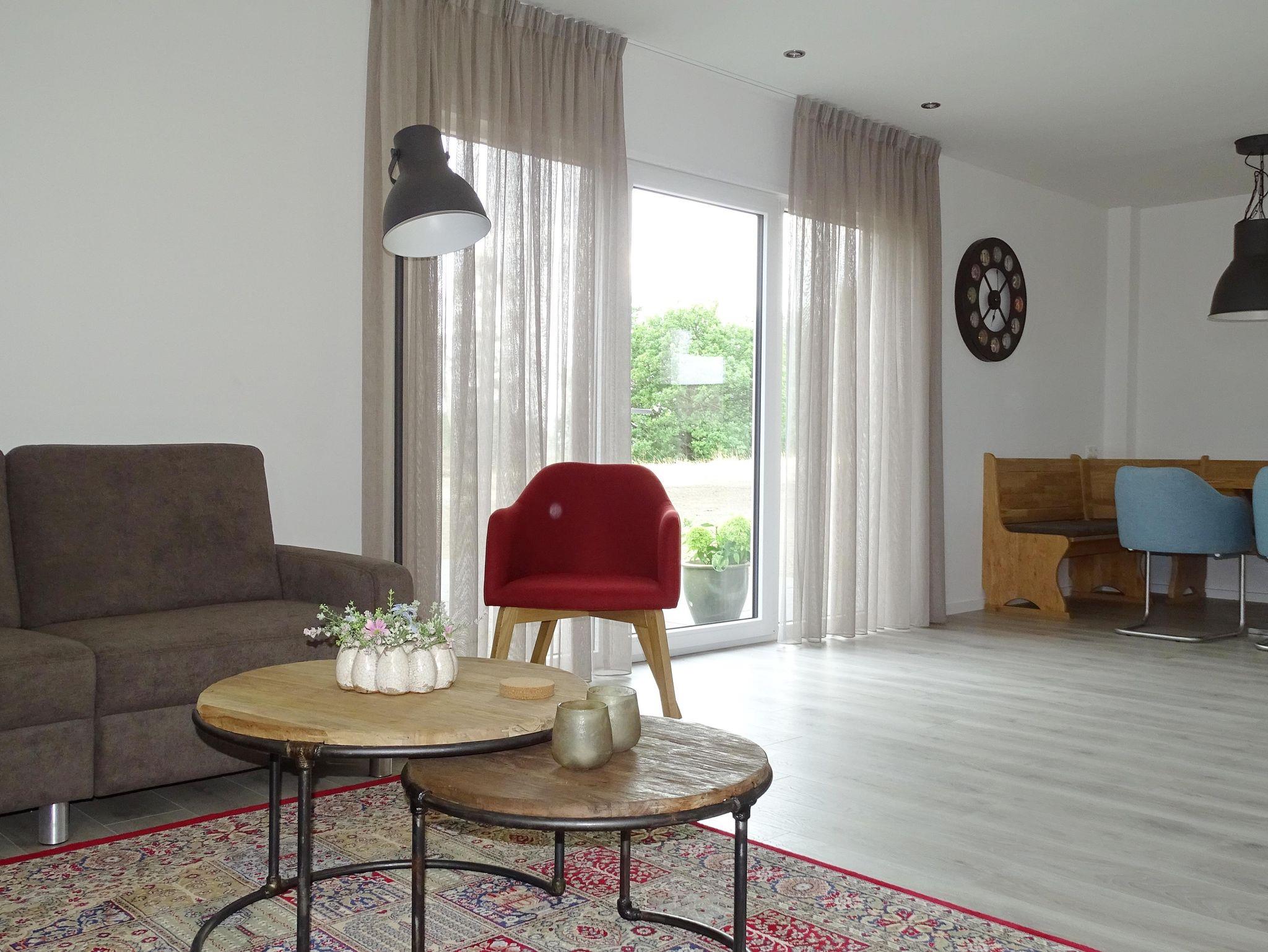 Ein geräumiges, luxuriöses 6-Personen-Haus mit eigenem Garten im Ferienpark Pulvermaar. Im extra großen Wohnzimmer finden zwei mal 6 Personen in verschiedenen Sitzecken Platz. Der große Esstisch mit Sitzecke bietet Platz für die ganze Familie.