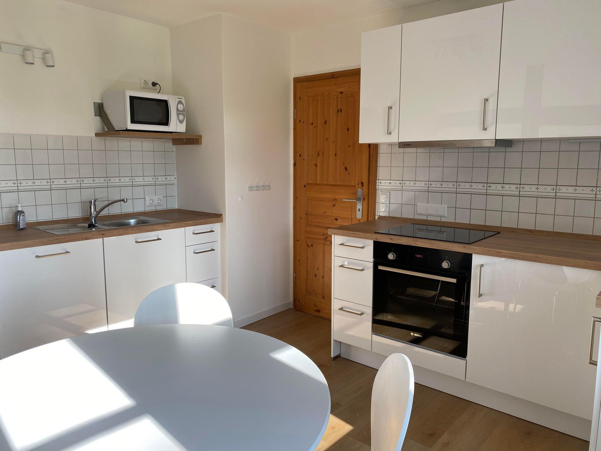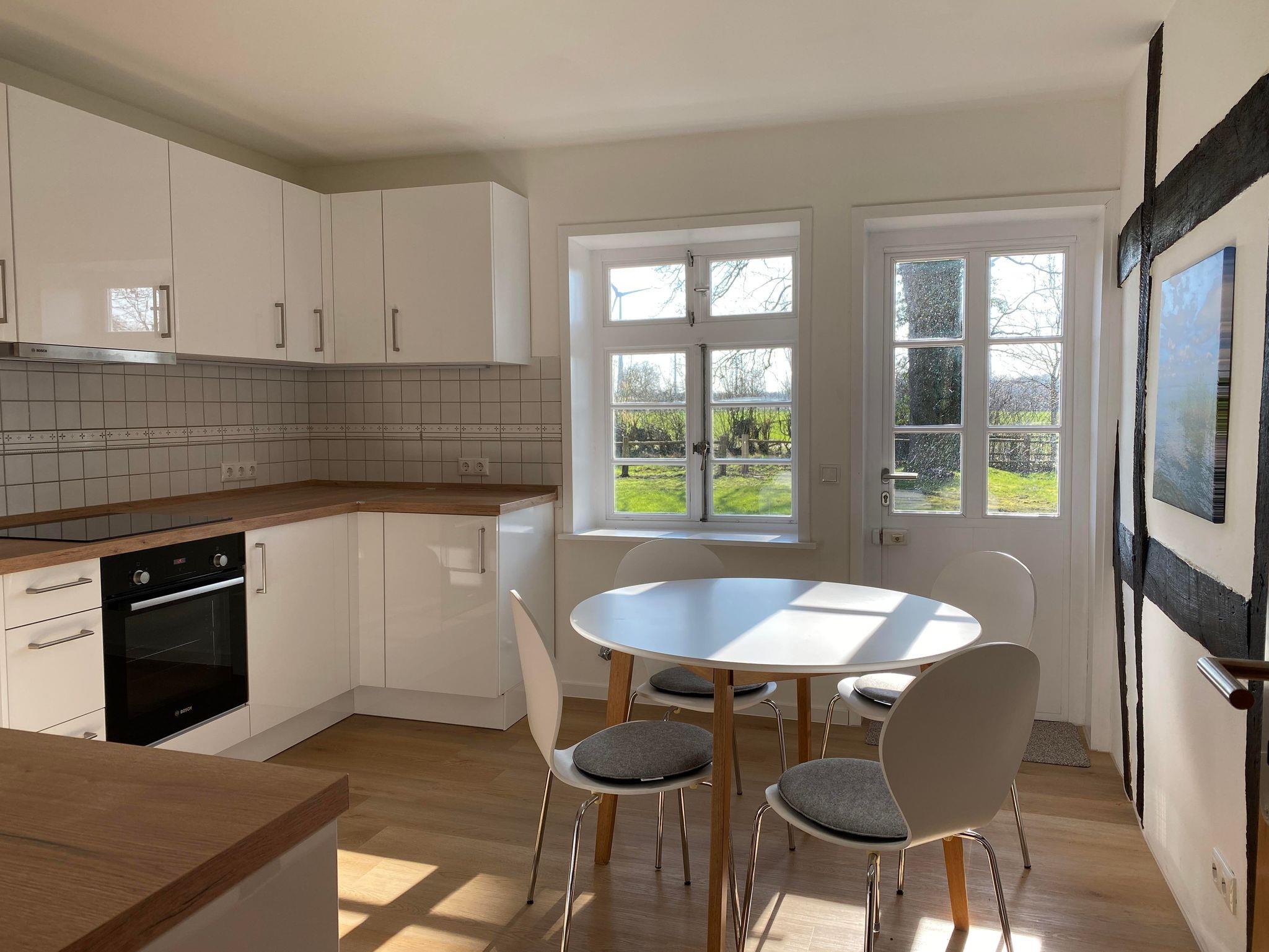 Die Küche ist komplett ausgestattet: Kühlschrank, Backofen, Geschirrspüler, Mikrowelle, Wasserkocher, Toaster, Kaffeemaschine, etc.