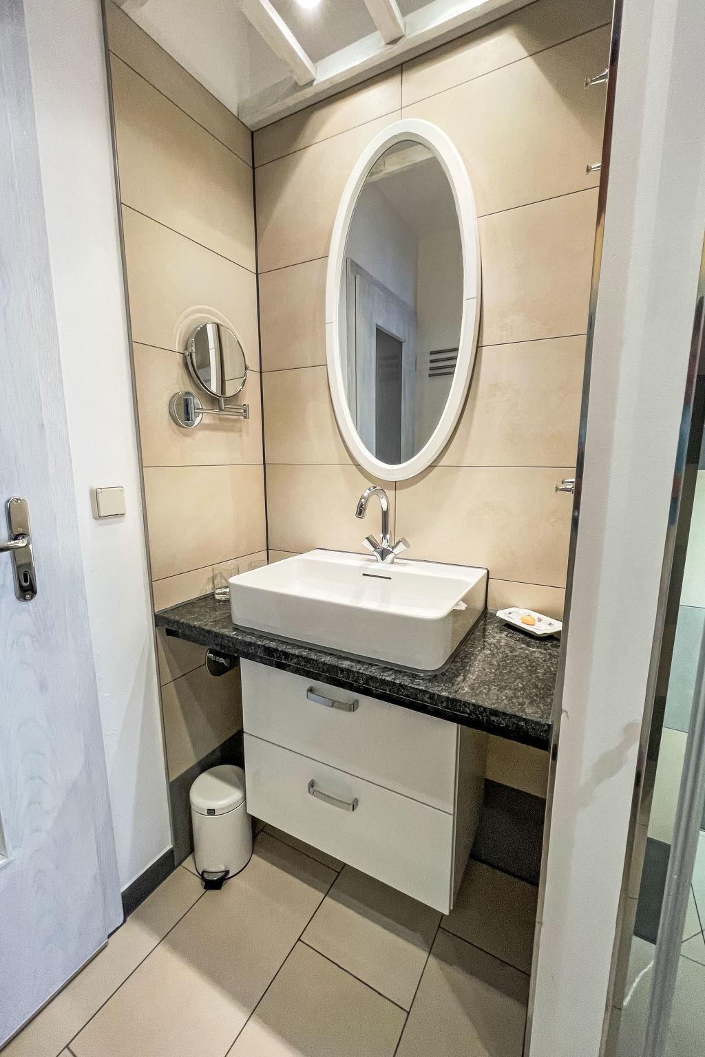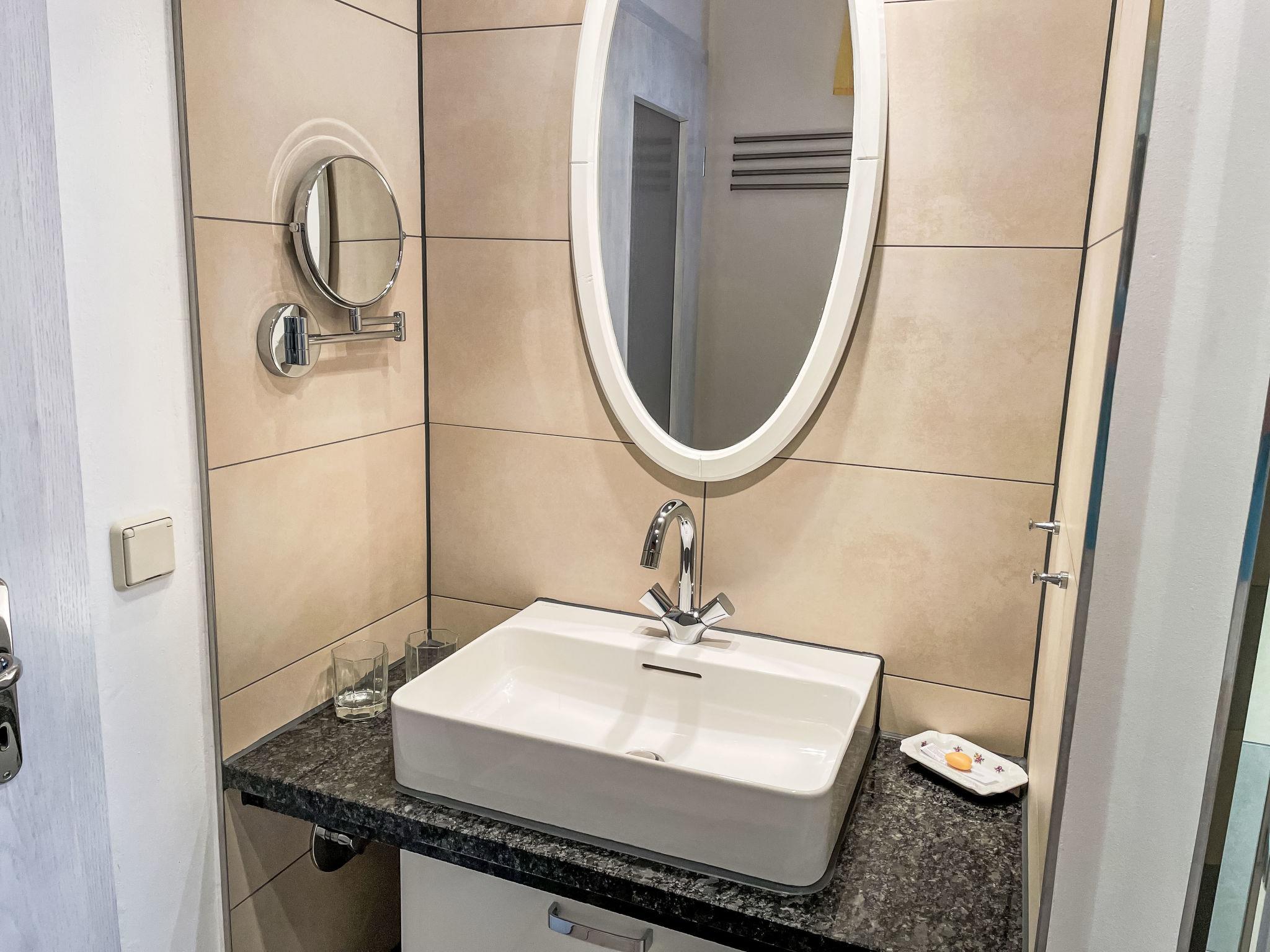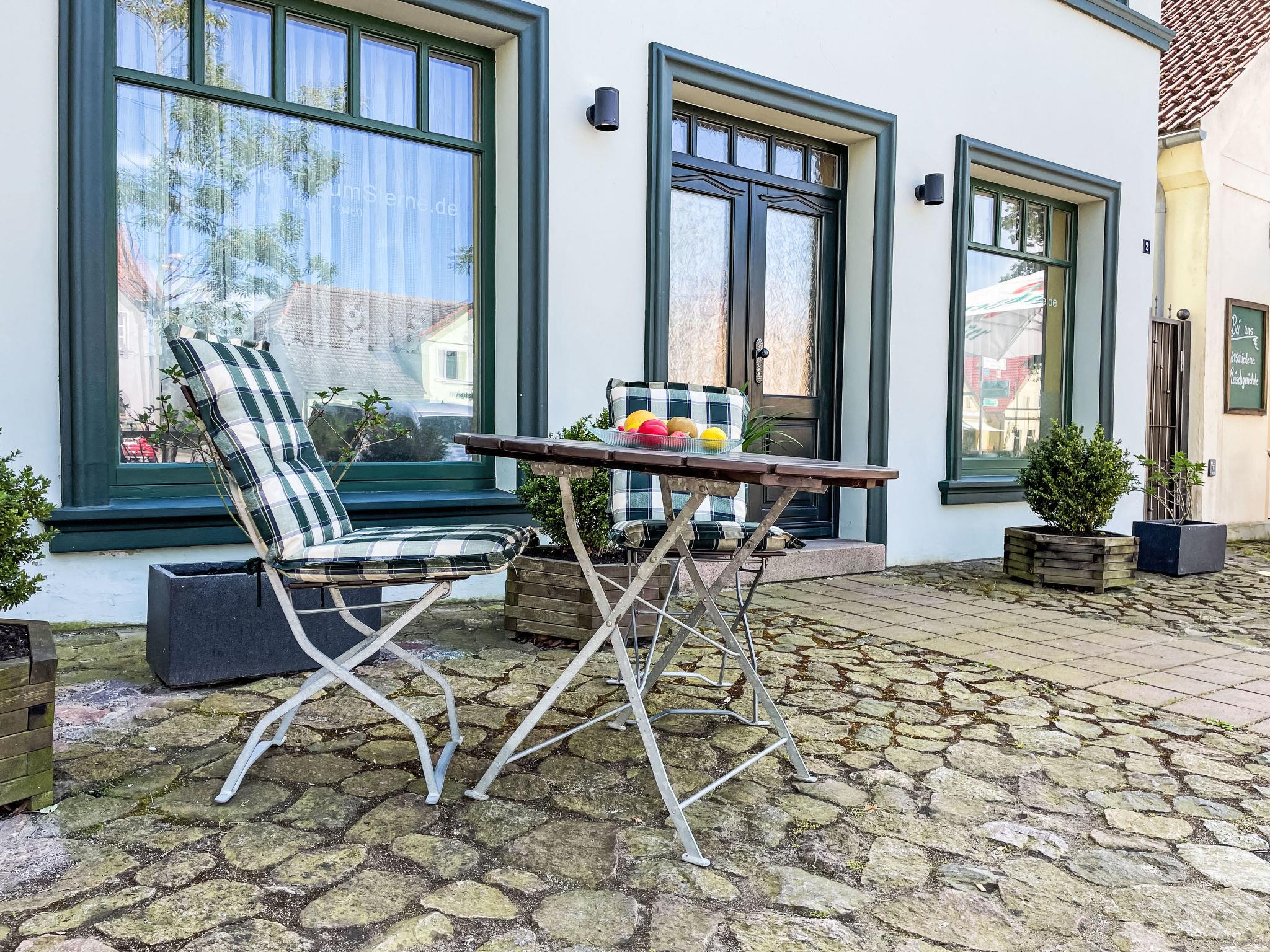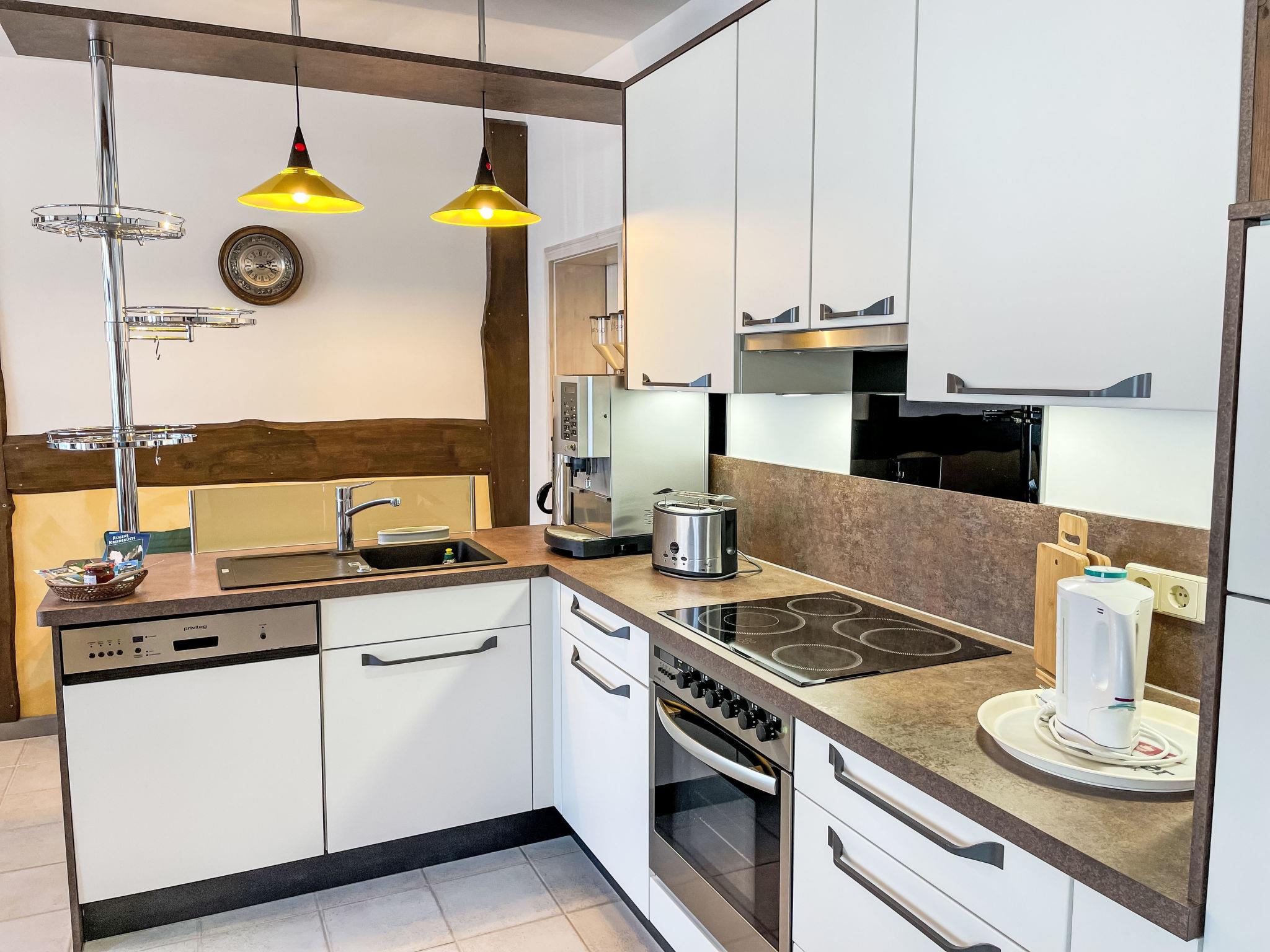 "Kaufmann", 1-room apartment 45 m2, on the ground floor. Modern and cosy furnishings: living/sleeping room with 1 double sofabed. Open kitchen (oven, 4 ceramic glass hob hotplates, toaster, kettle, electric coffee machine) with dining table. Exit to the terrace. Shower, sep. WC. Terrace. Terrace furniture. Facilities: Internet (WiFi, free). Please note: apartment carpark side. Non-smokers only. Maximum 1 pet/ dog allowed. Private entrance, smoke alarm, fire extinguisher. There is a parking space in the public car park (free of charge) 50m away. Loading/unloading possible at the apartment.