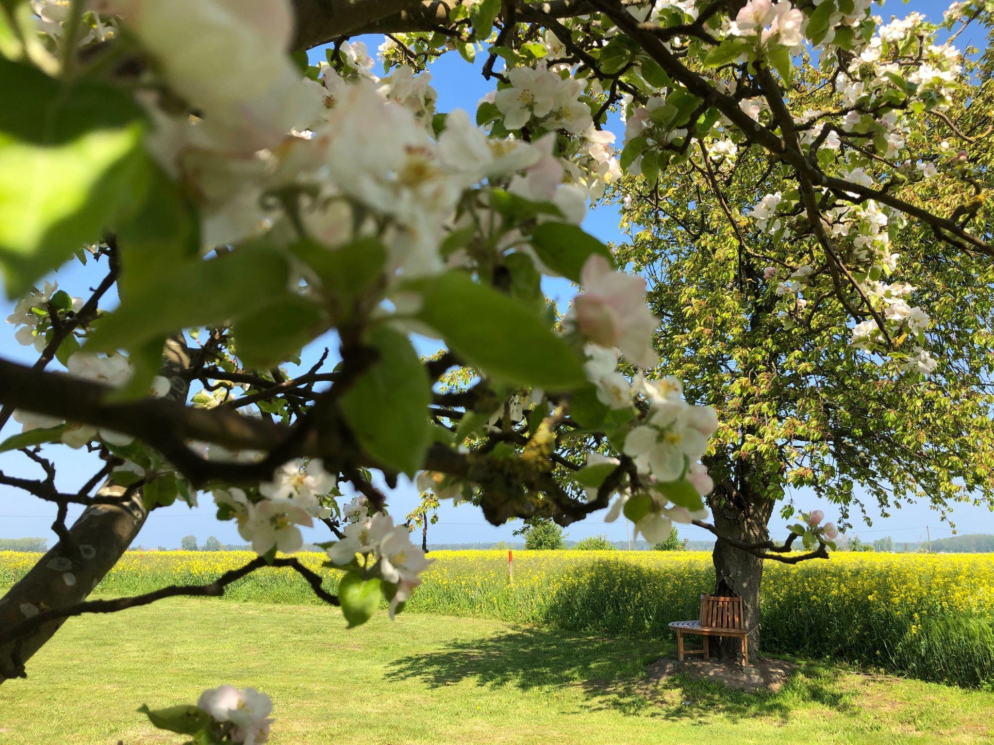 The approximately 2,500 square metre, natural garden plot with adjoining fields provides the perfect setting for this idyllic property. Spend relaxing hours on the terrace or in the garden, from where you can enjoy the sight of large flocks of wild geese and cranes in autumn and spring. A wallbox for electric vehicles has also been available since 2025, so you can plan your excursions into the surrounding area in an environmentally conscious way.