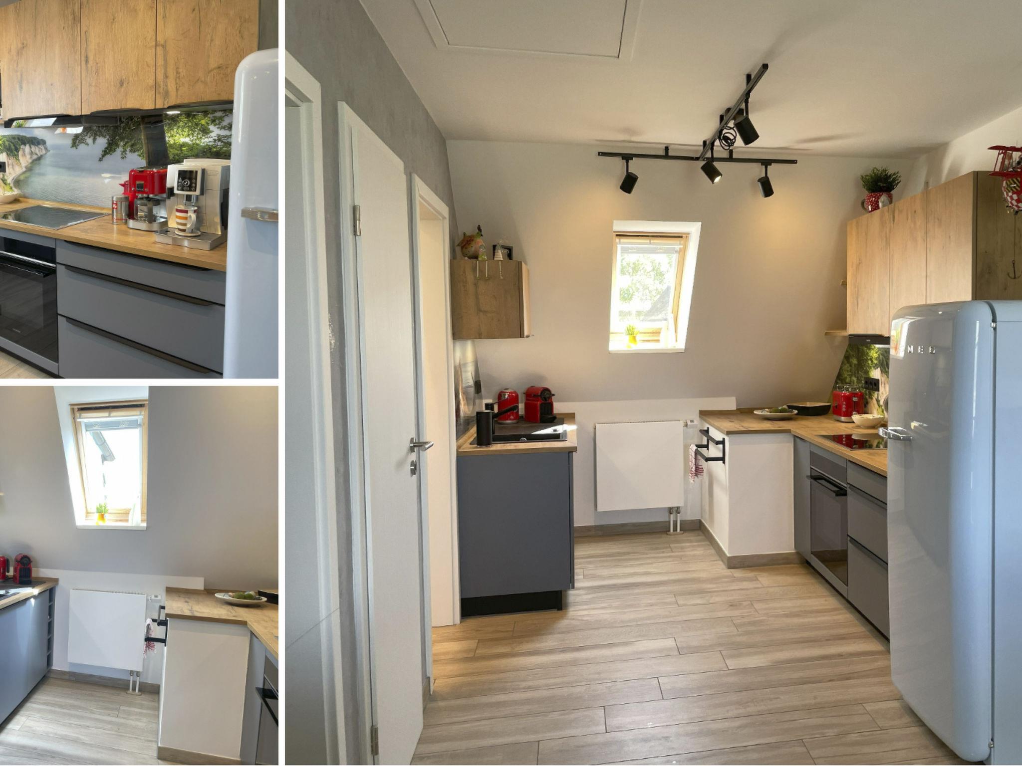 Bread roll service/kiosk 100 m, shopping and restaurant 2.5 km, inlet 20 m, marina 100 m, sandy beach 400 m. Centre of Gingst with shops, restaurants 12 km. Schaprode with excursion boats, island of Hiddensee 13 km. Sailing, boat hire, surfing and swimming 100 m, further bathing facilities 400 m, horse riding 6 km.