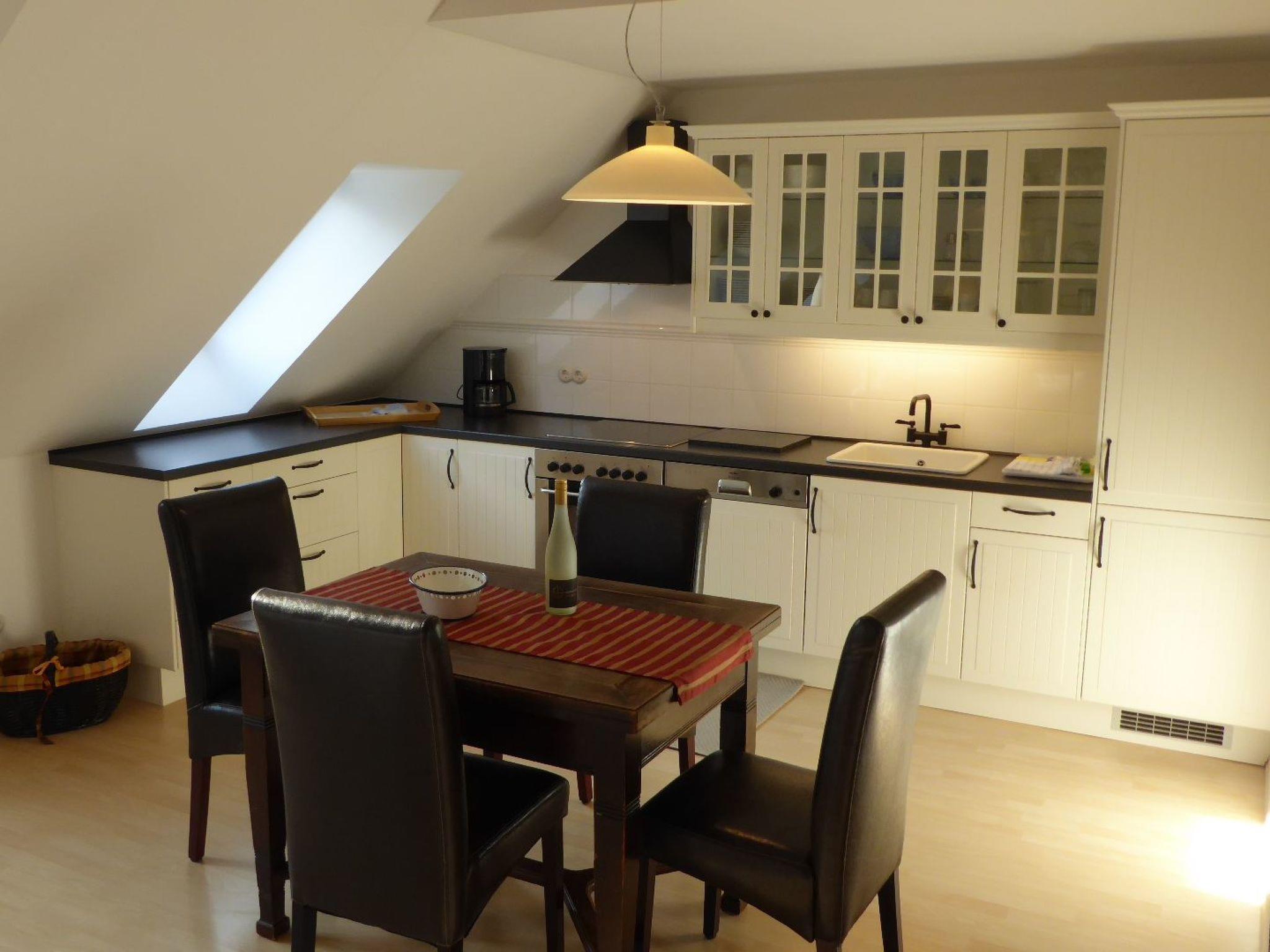 The holiday flat is furnished with antique and modern furniture. The special ambience and attention to detail will inspire you! The standard occupancy of the flat Galerie Mitte is four people, an extra bed can be requested. Children are welcome! It offers spacious rooms with plenty of natural light and an open, light-flooded gallery. These immediately create a feeling of well-being. You will be pleased not to have a landline connection. Nevertheless, modern technology is at your disposal. WLAN access, a radio and satellite TV complete the furnishings. The living area offers seating, while the kitchen area includes a cooker, coffee machine, fridge, microwave and dishwasher, as well as a dining area. There are two bedrooms, one with a double bed. The sanitary facilities offer the highest level of comfort: an exclusive white designer bathroom and a sauna in the coach house offer you special holiday enjoyment. Enjoy the sauna on cool evenings and the barbecue on the outdoor seating area on warm summer days. Pets are not allowed.