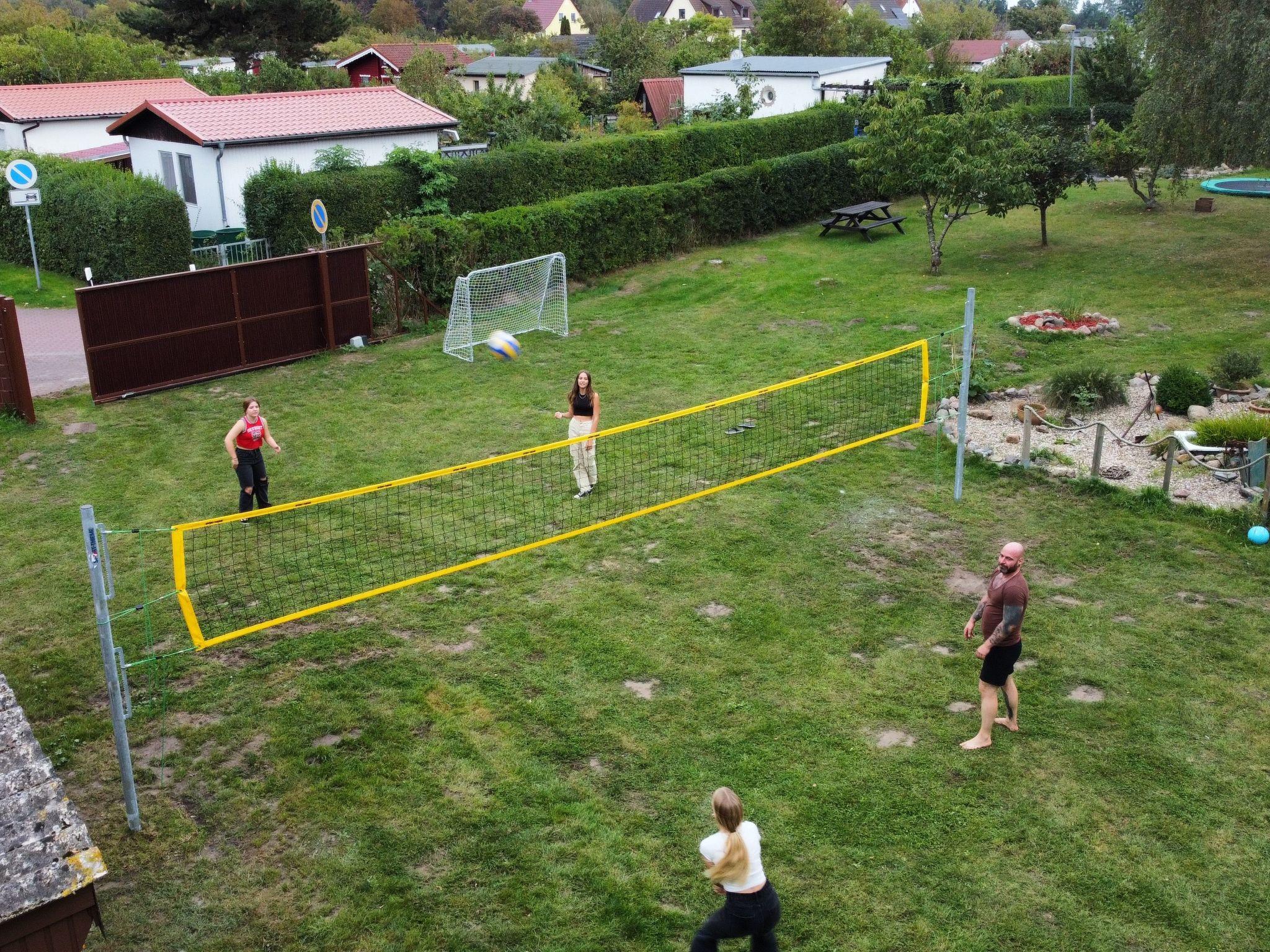There are parking spaces in front of the Boddenferienhaus. There is seating on the terrace in front of the flats. A picnic bench and sun loungers can also be used. A barbecue is also available to guests. All the leisure facilities on the neighbouring property can also be used - volleyball, football, table tennis, swings, trampoline and sandpit invite you to have fun.