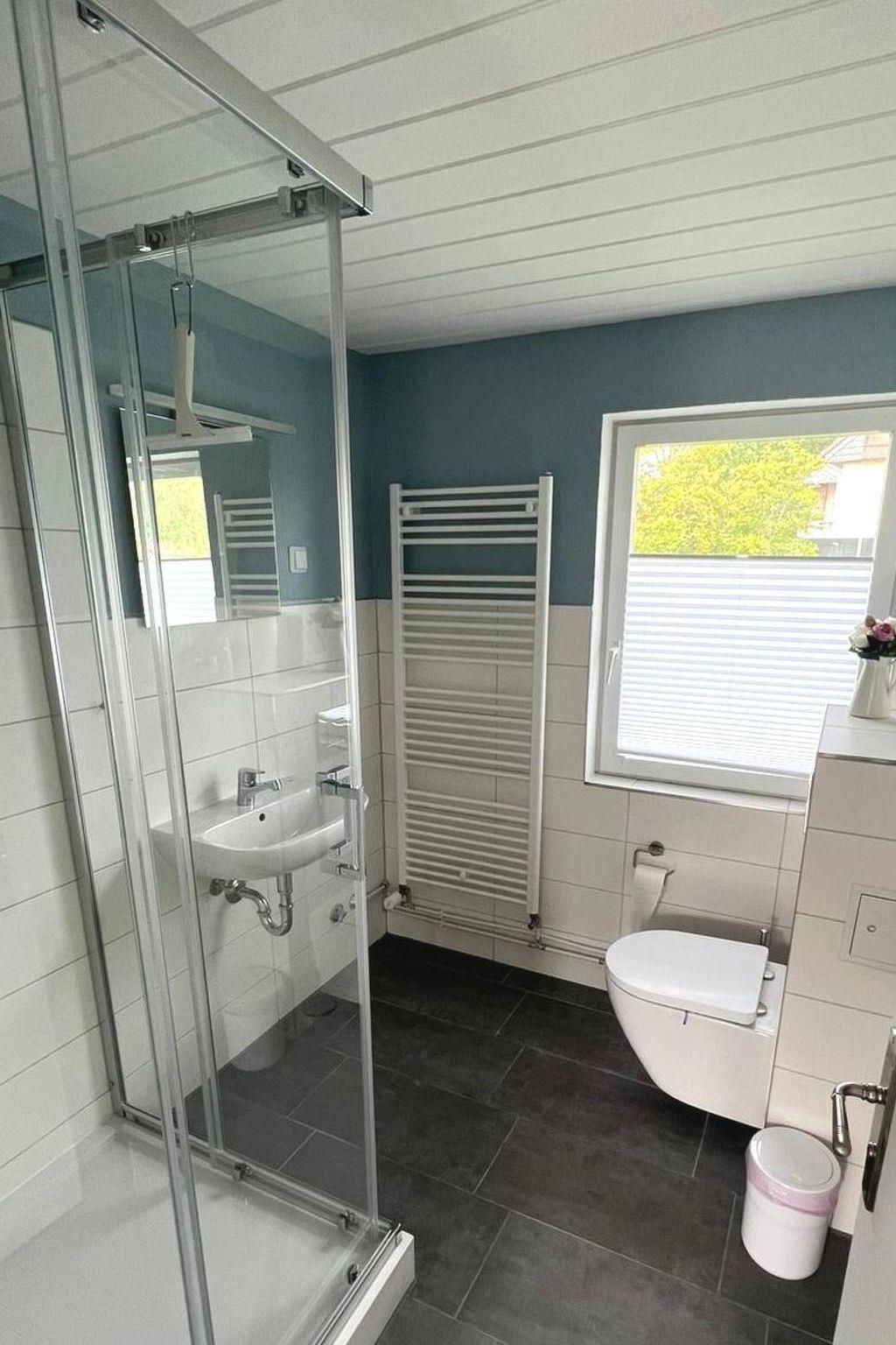 The Boddenferienhaus is equipped with everything you need for a holiday. Modern furnishings and colours have found their place here. Our holiday flats are ideal for up to 4 people. The kitchen is equipped with everything you need. Cooking - baking, everything is possible. The living rooms are each equipped with a TV, a dining table and a sofa bed. The bedroom has a double bed and a wardrobe. The bathrooms are modern and clearly furnished with a shower, WC, washbasin and hairdryer.