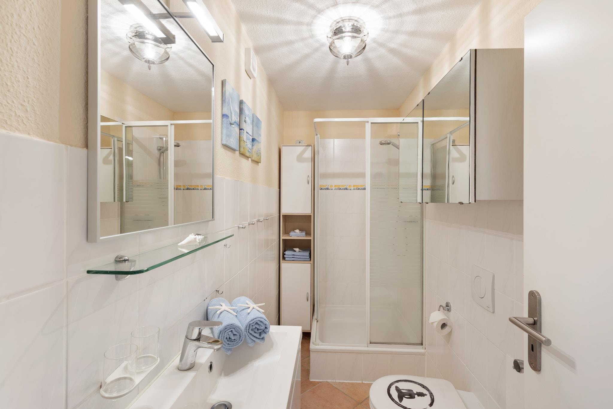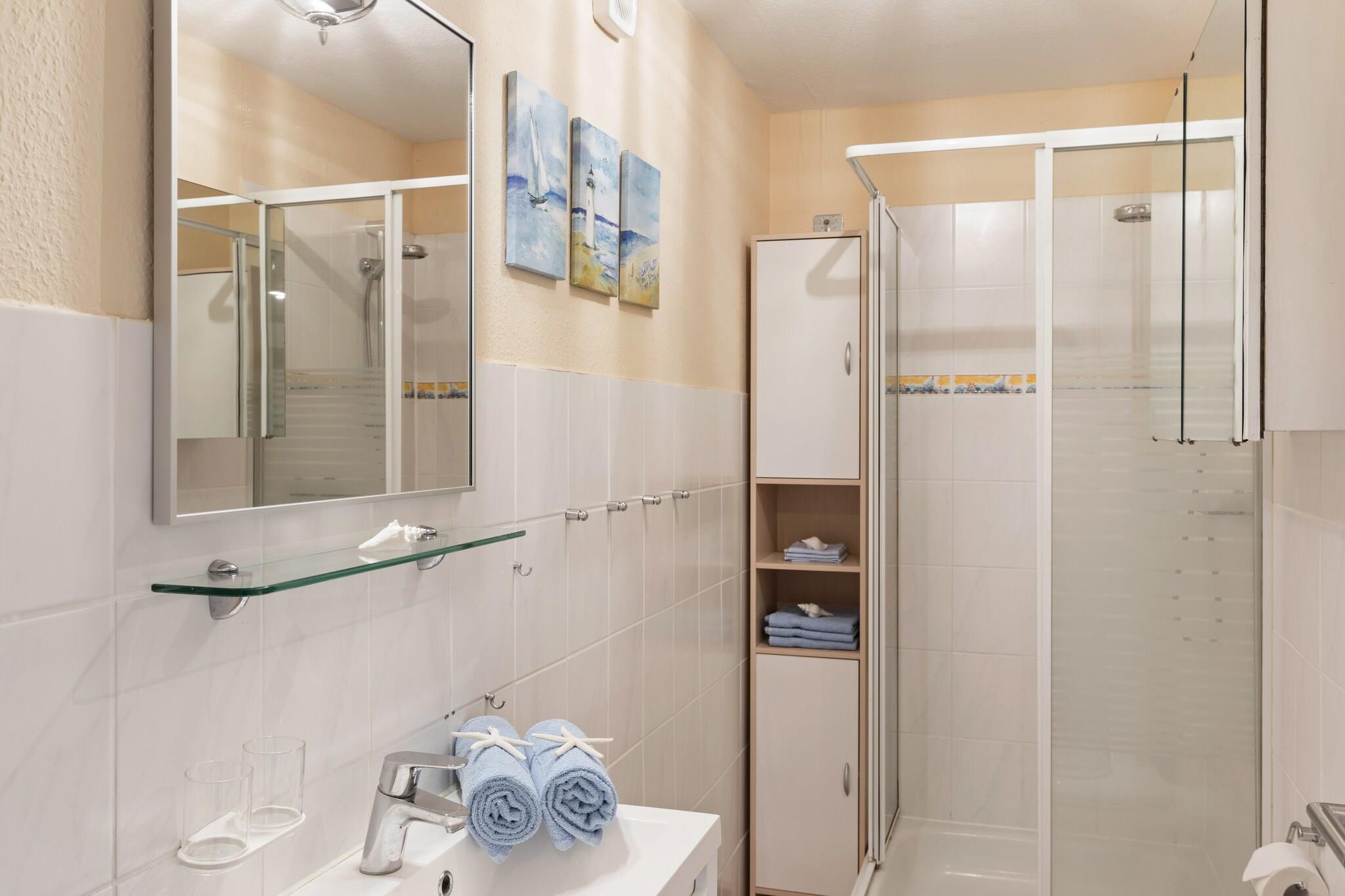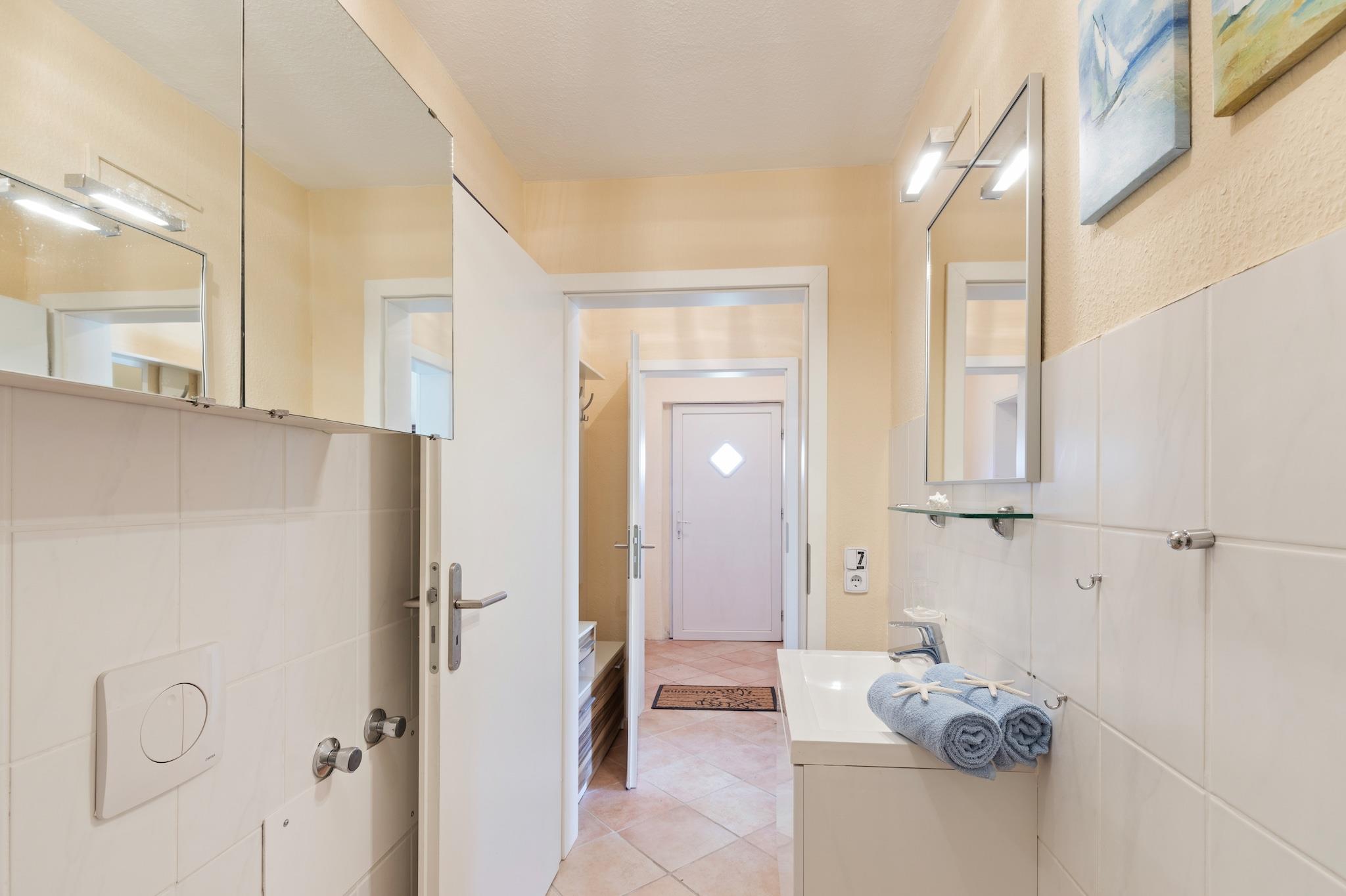 Beliggende kun 800 meter fra havets strand, inviterer dette indbydende tilflugtssted i stueetagen i Gingst gæster (og deres kæledyr!) til at slappe af i komfort omgivet af natur og kystlinjecharme. Den rummelige stue/spisestue har en dobbelt sovesofa, pejs, satellit-tv, dvd- og cd-afspillere - perfekt til hyggelige aftener eller afslappet afslapning. Det fuldt udstyrede køkken omfatter en kaffemaskine, mikroovn, brødrister, køleskab med fryser og opvaskemaskine, hvilket gør selvforplejning ubesværet. Nyd hjemmelavede måltider ved spisebordet eller udenfor på den møblerede terrasse eller terrasse. Dobbeltværelset lover afslappende nætter, mens det moderne badeværelse er udstyret med bruser, toilet, hårtørrer og det mest nødvendige. Træd ud i din private 100 m² store have, komplet med BBQ-grill, liggestole, parasol og festspil – ideel til sommerhygge eller afslappede eftermiddage. Med parkering på stedet, et strygebræt og endda radio for stemning, udgør denne ejendom en praktisk, men charmerende base for par, små familier eller naturelskende rejsende.
