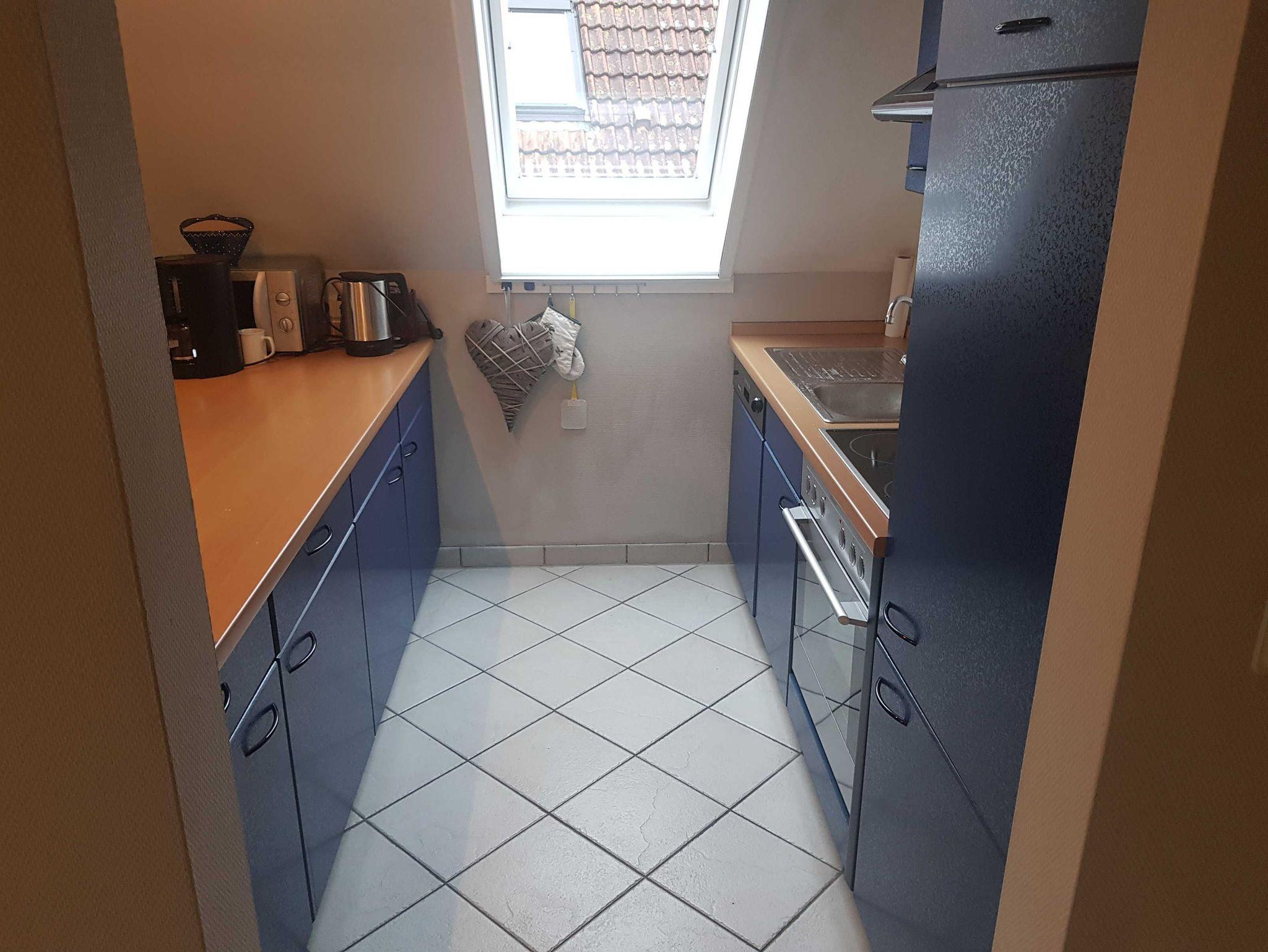 Kochtöpfen und Pfannen, Kühlschrank mit Gefrierfach, Spülmaschine,