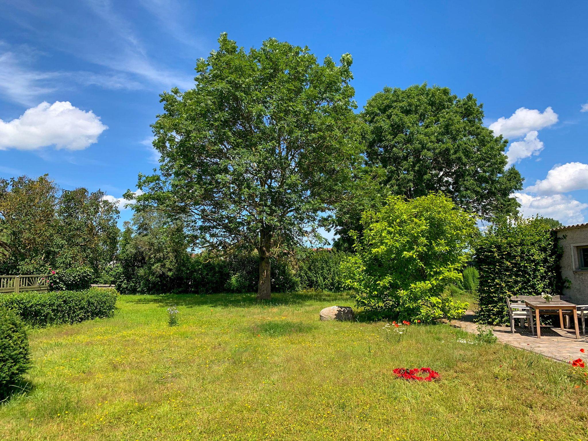 Das Grundstück und der Garten werden gemeinschaftlich von den Gästen genutzt. Im Schuppen stehen Trockner, Bügeleisen, Gartenmöbel, Feuerschale und Grill zur Verfügung.