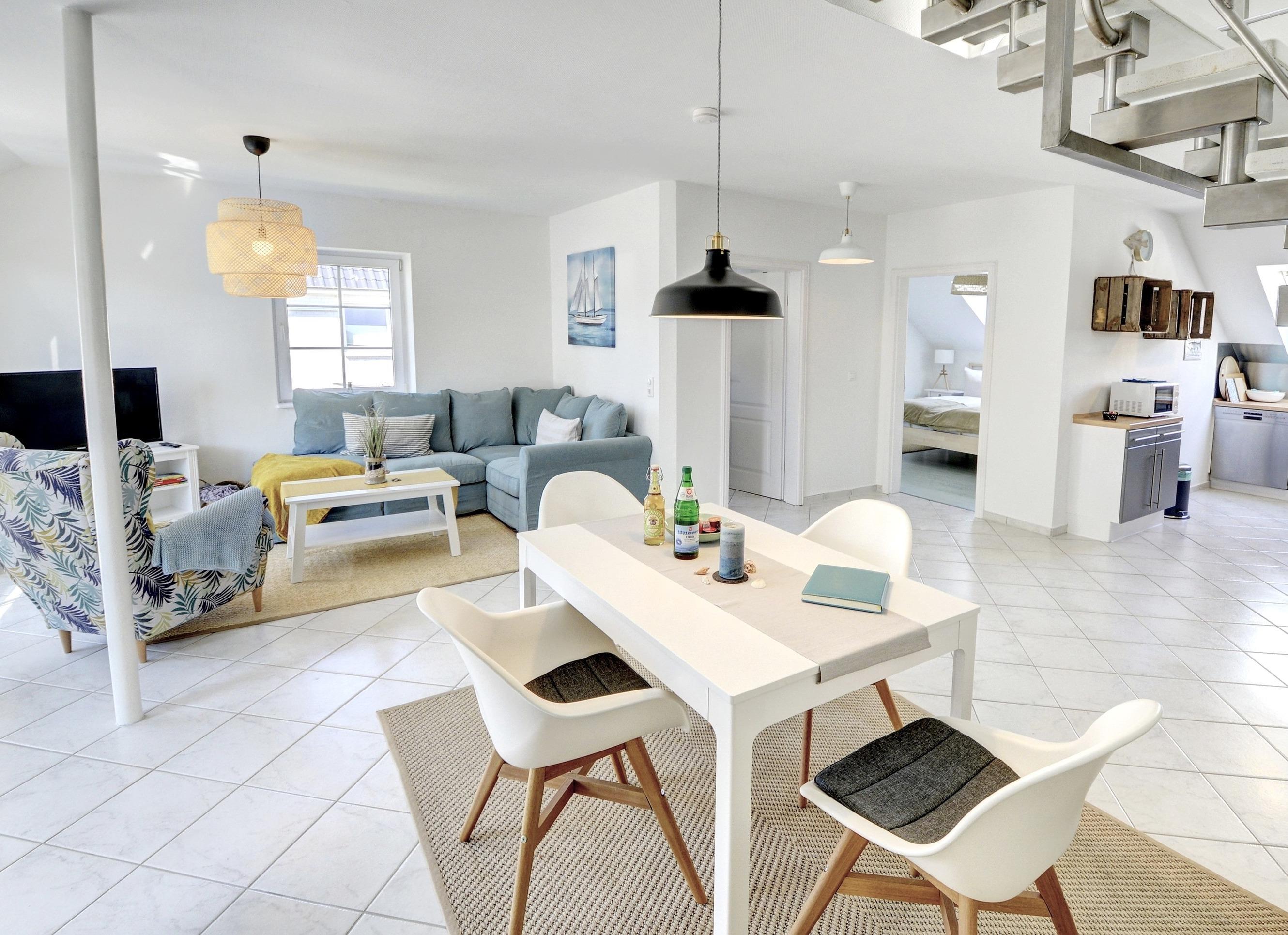 Herzlich willkommen in unserer Komfort-Ferienwohnung "Dünengras". Sie befindet sich im idyllischen Glücksburg-Schausende und bietet auf zwei Ebenen ausreichend Platz für bis zu fünf Personen. Durch die hochwertige Ausstattung bleiben keine Wünsche offen: Ein gemütlicher Schlafbereich, eine voll ausgestattete Küche sowie ein einladender Wohn- und Essbereich sorgen für ein Höchstmaß an Komfort.