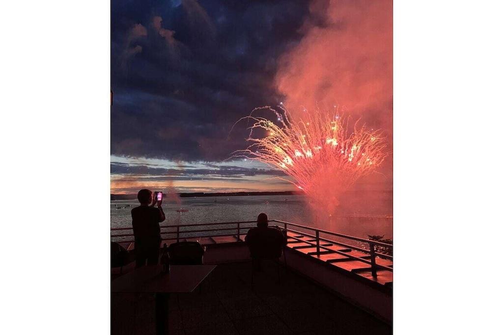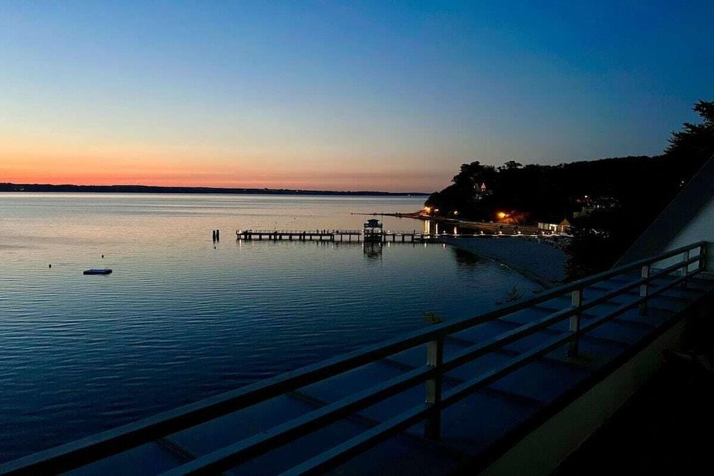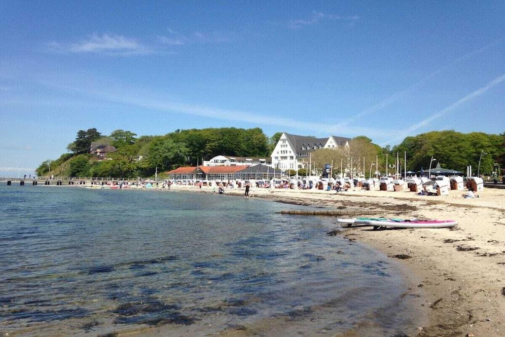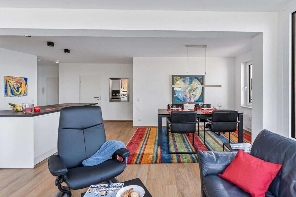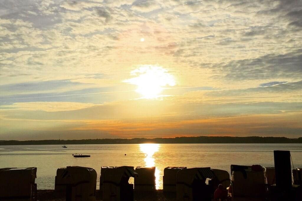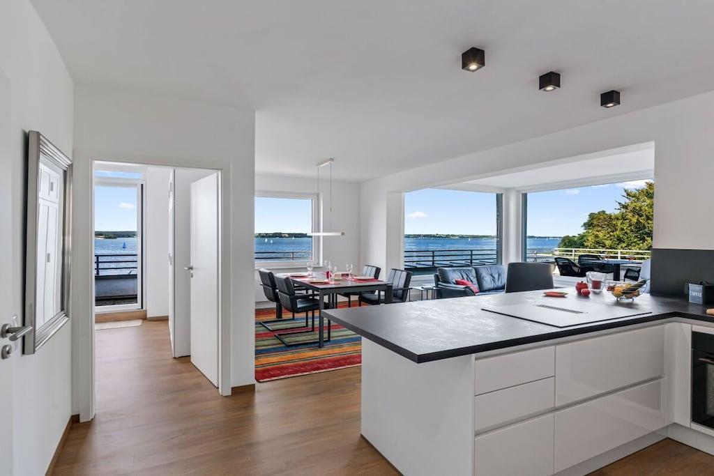 Holiday apartment for 4 people in a top location, right on Sandwig beach in Glücksburg, Flensburg Fjord, with a secluded balcony and a large roof terrace facing the water. 2 bedrooms, living-dining room and open kitchen with a view over the fjord to the Ochsen Islands in Denmark. Bathroom and additional guest toilet. Spacious roof terrace for breakfast and also for yoga or Pilates exercises for two or possibly with a fitness trainer...? (Addresses for booking purposes can be provided.) Yacht school and swimming in the fjord or in autumn/winter in the Fördeland thermal baths, which are a 5-minute walk away? Pure relaxation and fitness!