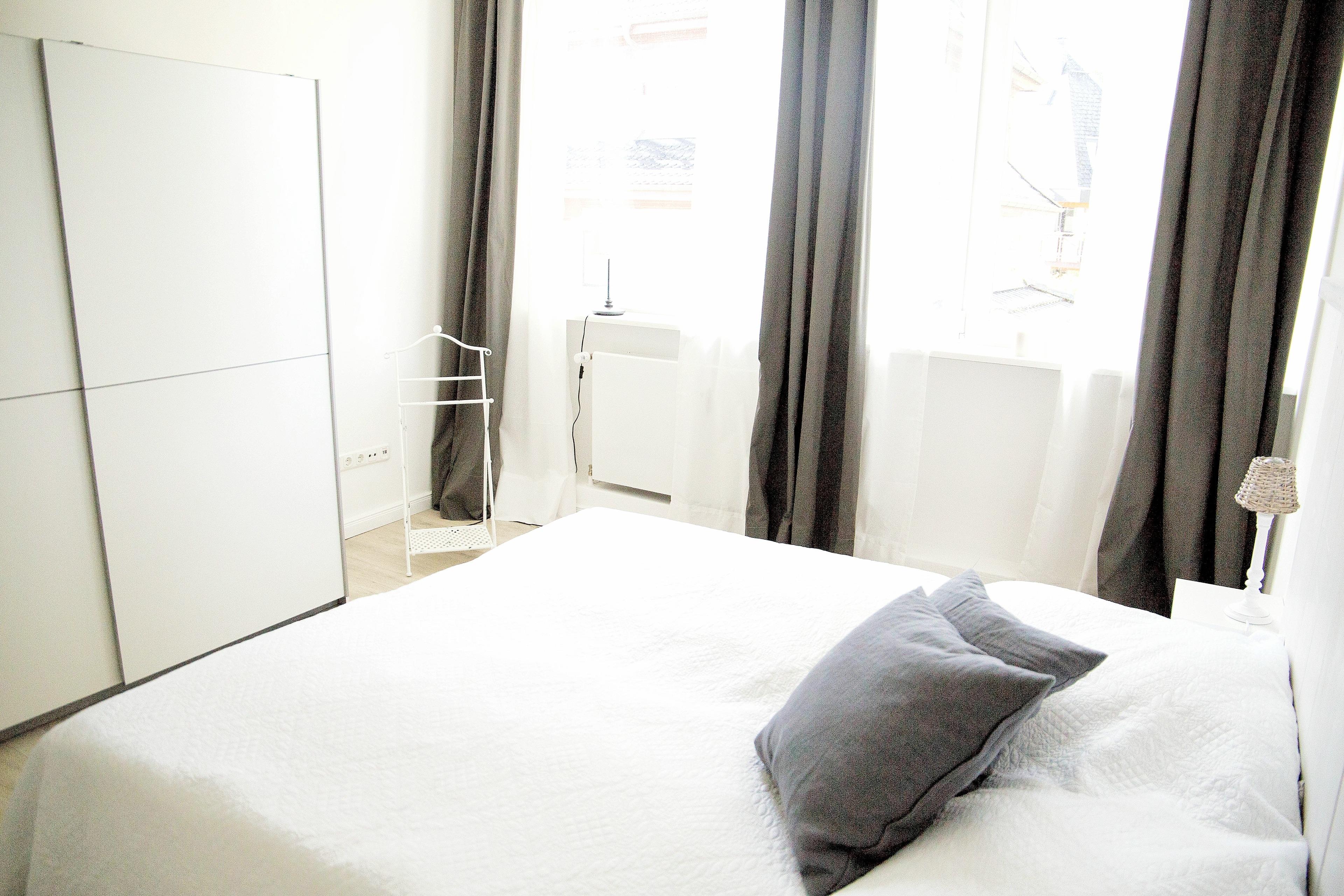 Das Badezimmer verfügt über eine bodentiefe, großzügige Walk-In-Dusche, eine Handtuchheizung und eine praktische Wasch-Trocknerkombination. Im geräumigen Schlafzimmer finden Sie einen Kleiderschrank, einen Spiegel, eine Kommode und einen weiteren Flat TV.