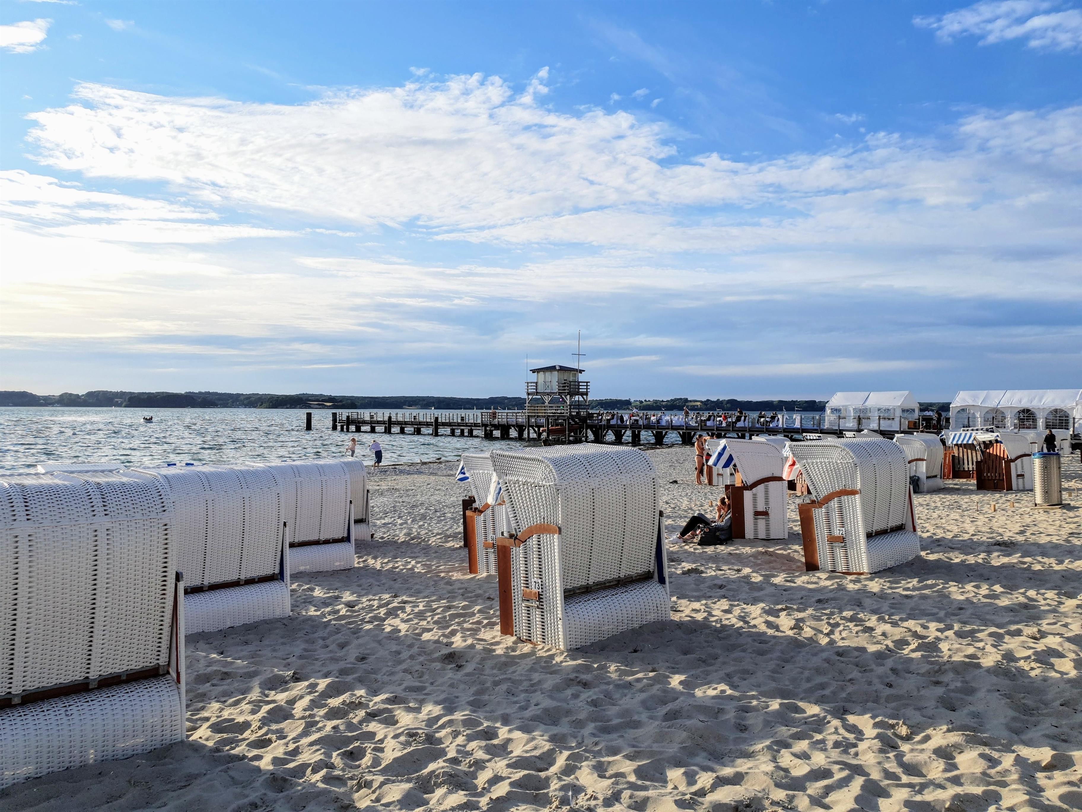 Von Mai bis Ende September steht Ihnen eine Strandkorb am Glücksburger Strand zur Verfügung.