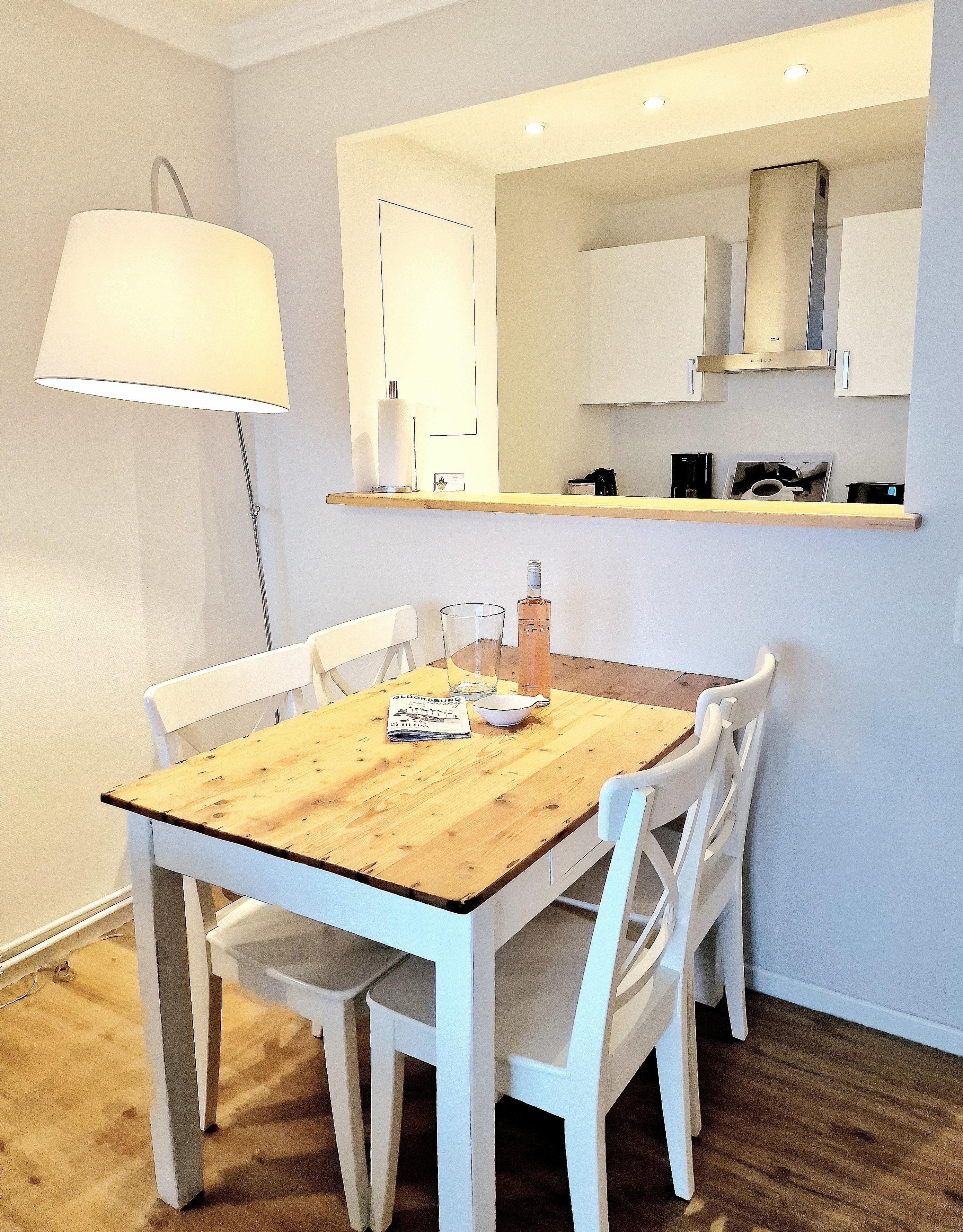 Im Duschbad steht Ihnen außerdem eine Waschmaschine sowie ein Trockner zur Verfügung. Großzügige Schränke im Schlafzimmer und im Flur bieten ausreichend Platz für Ihre Urlaubsgarderobe. Optional können Bettwäsche und Handtücher für € 25 pro Person dazu gebucht werden – Strandtücher bitten wir Sie, selbst mitzubringen.