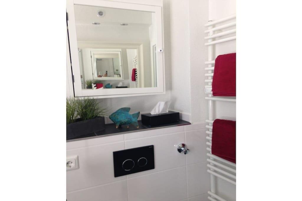 På 3. etage: (entre(), åbent køkken(, kogeplade, elkedel, brødrister, komfur, kaffemaskine, ovn, køleskab, fryser), soveværelse(, , , dobbeltseng, Fjernsyn, spisebord, Blu-ray afspiller, insektnet), badeværelse(, , toilet, bruser, håndvask, føntørrer)) , , , , Internetadgang, Internetadgang, balkon(havemøbler), varme,