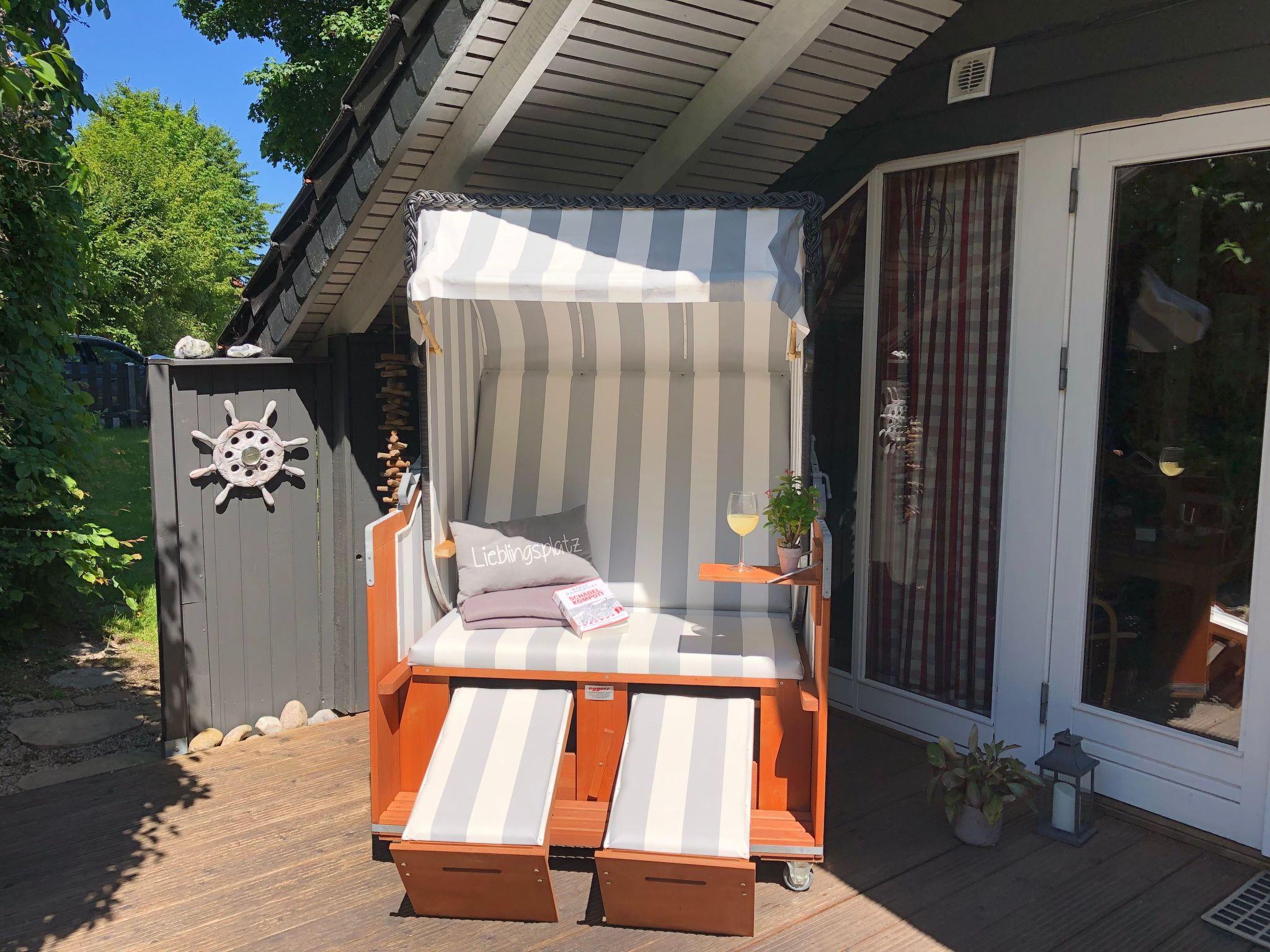 These are equipped with garden furniture, sun loungers and a beach chair.