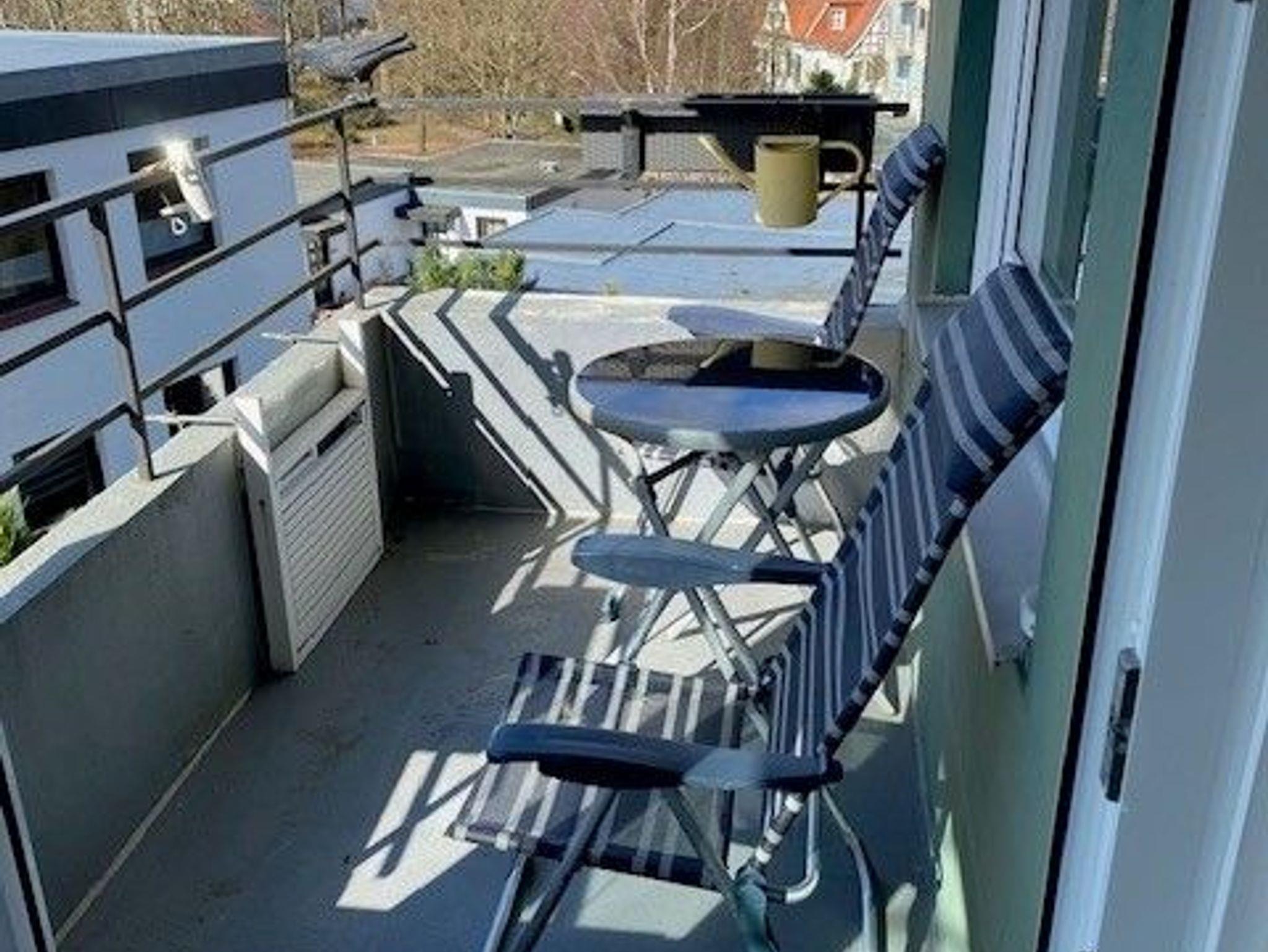 Die Wohnung besteht aus einem hellen und gemütlichen Wohn-/ Essbereich mit einem Schlafsofa, offener, komplett ausgestatteter Einbauküche mit Geschirrspüler und Kaffeemaschine, einem Duschbad und einem Balkon.