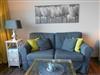 Die 53 qm Wohnung ist modern ausgestattet und für 2 Personen geeignet. Sie verfügt über ein Schlafzimmer, ein Wohnzimmer mit Essecke mit Zugang zur großen Seeterasse mit Blick über die Förde, WC und Dusche in getrennten Räumen und eine kleine Einbauküche.