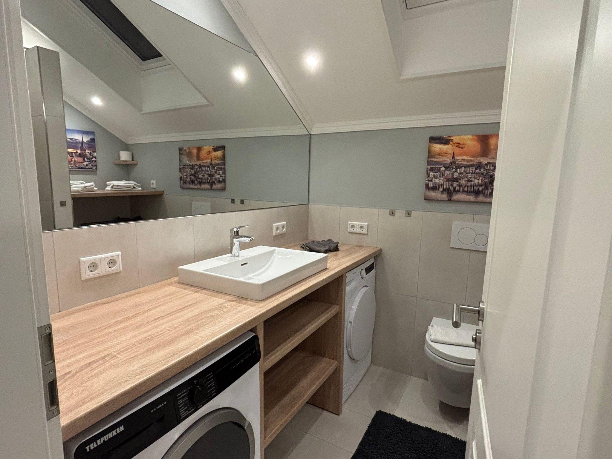 Zusätzlich gibt es einen Hauswirtschaftsraum, der weiteren Stauraum und Ordnung ermöglicht.