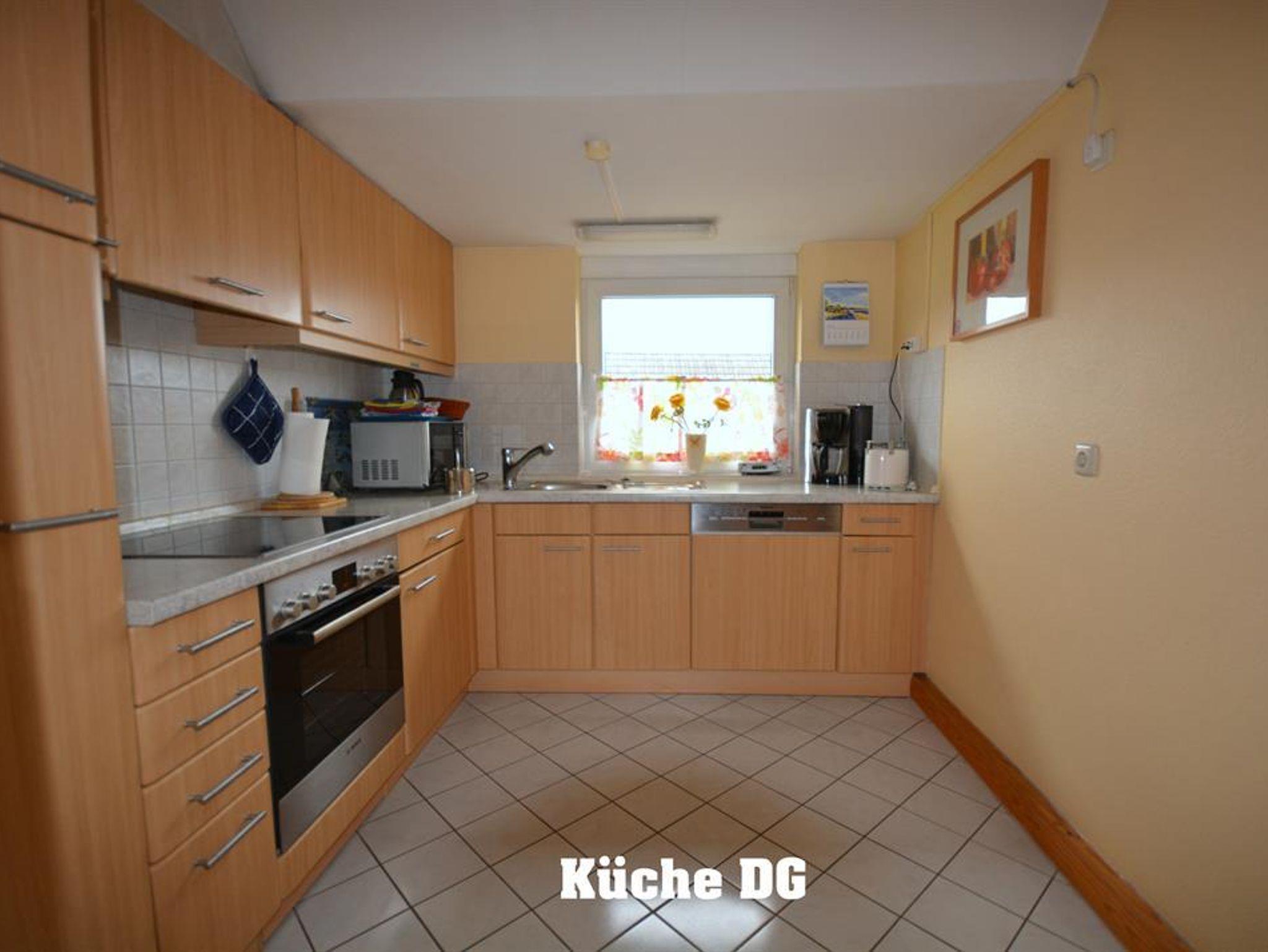 • 1 Küche mit Geschirrspüler, Mikrowelle, Kühl- Gefrierkombination, Herd, Backofen, Kaffeemaschine, Wasserkocher und Toaster