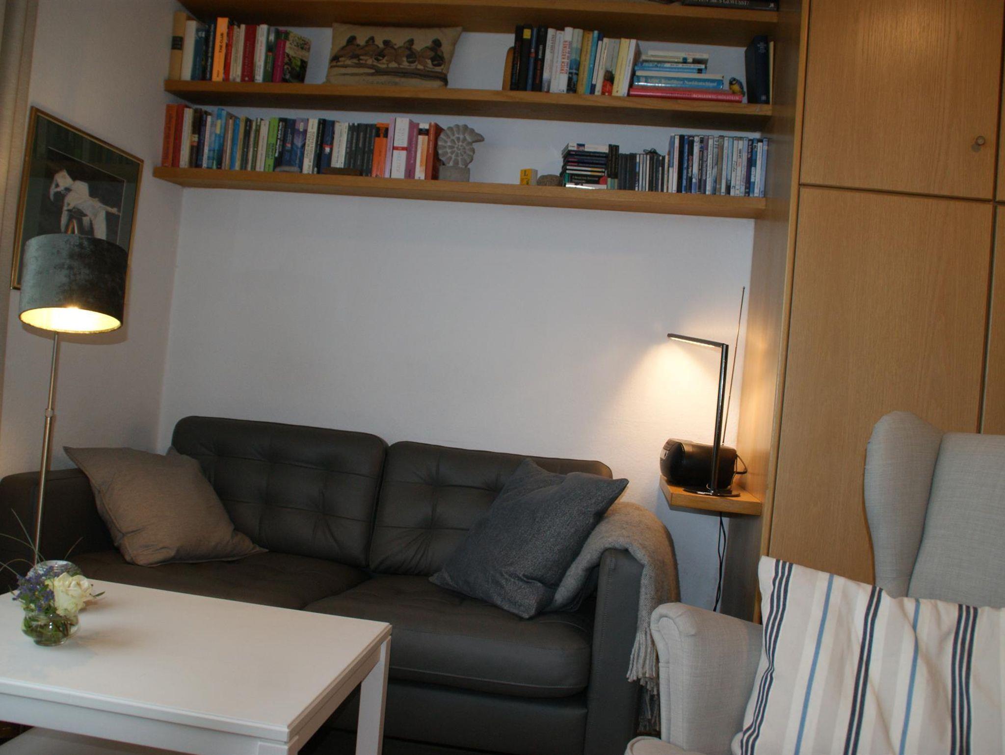• 1 Wohnzimmer mit zwei hochwertige Schrankbetten nebeneinander, Sitzgruppe, Couchtisch, Fernseher, Radio, CD- Player, DVDs