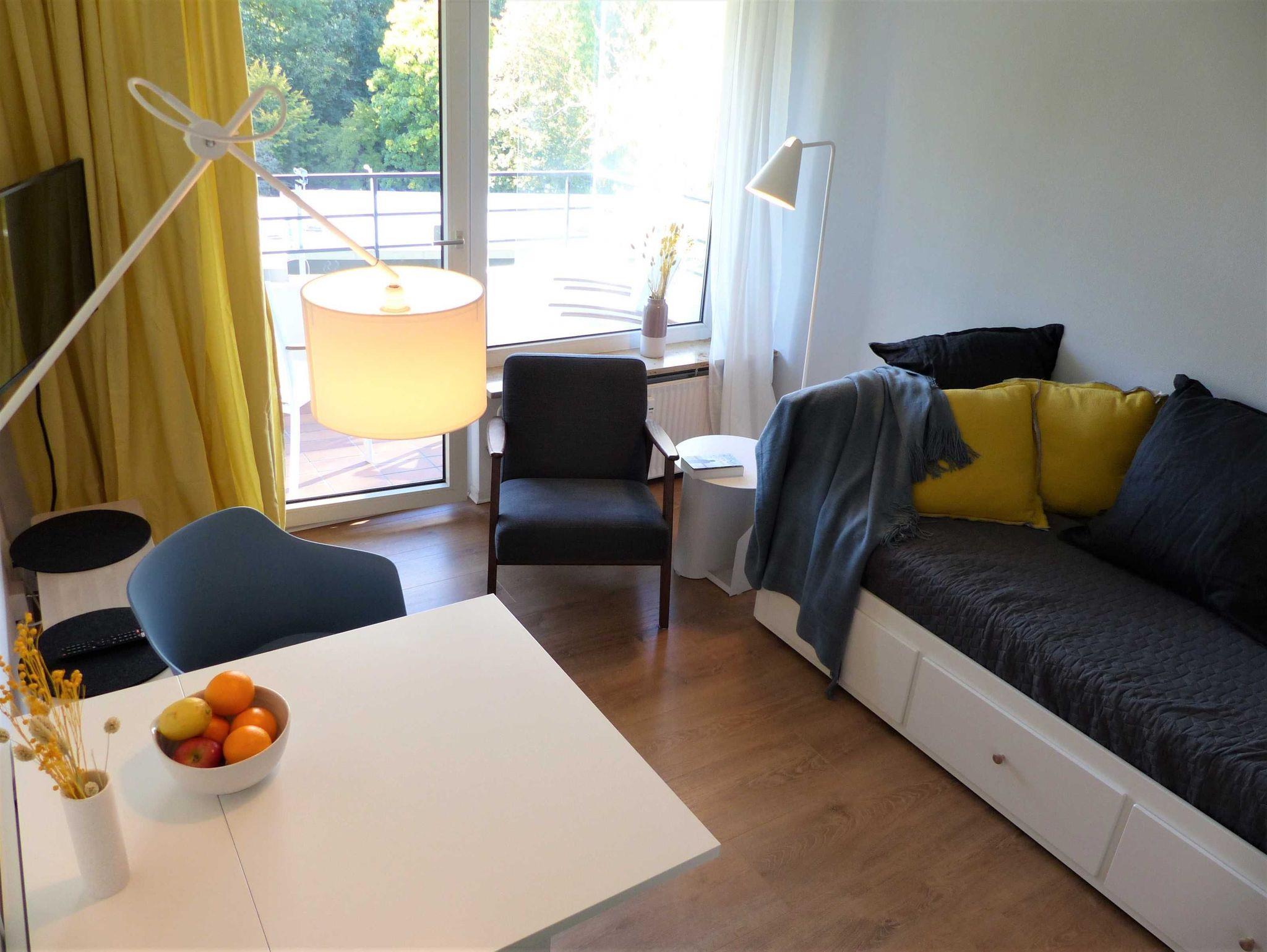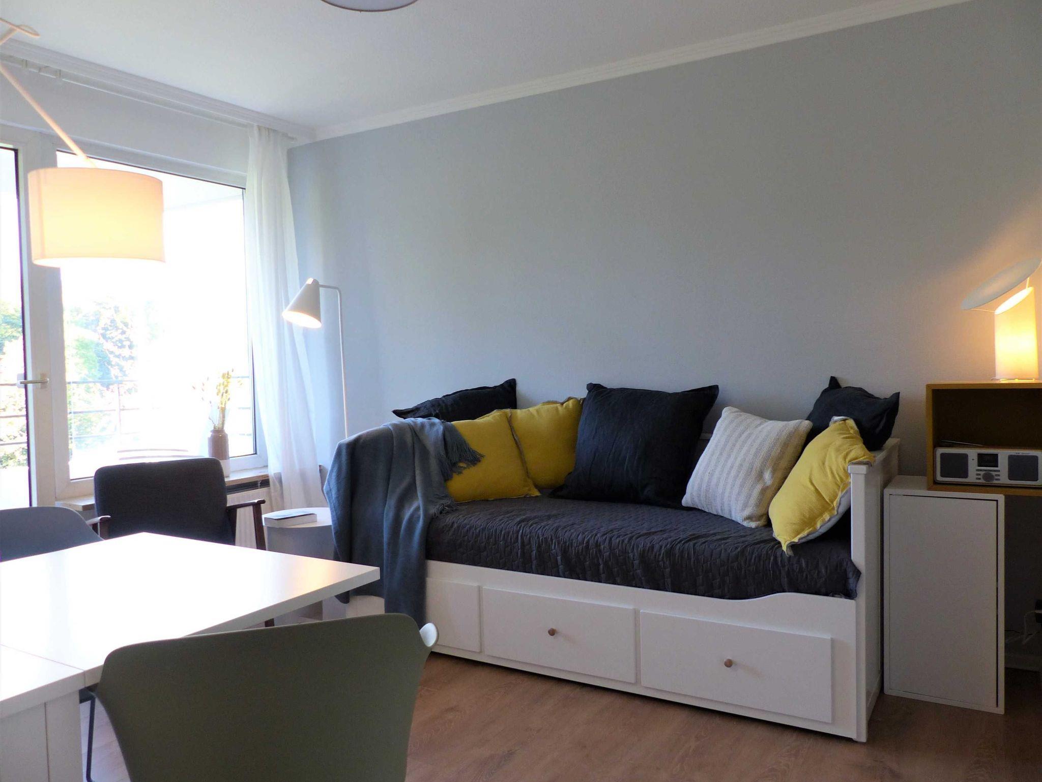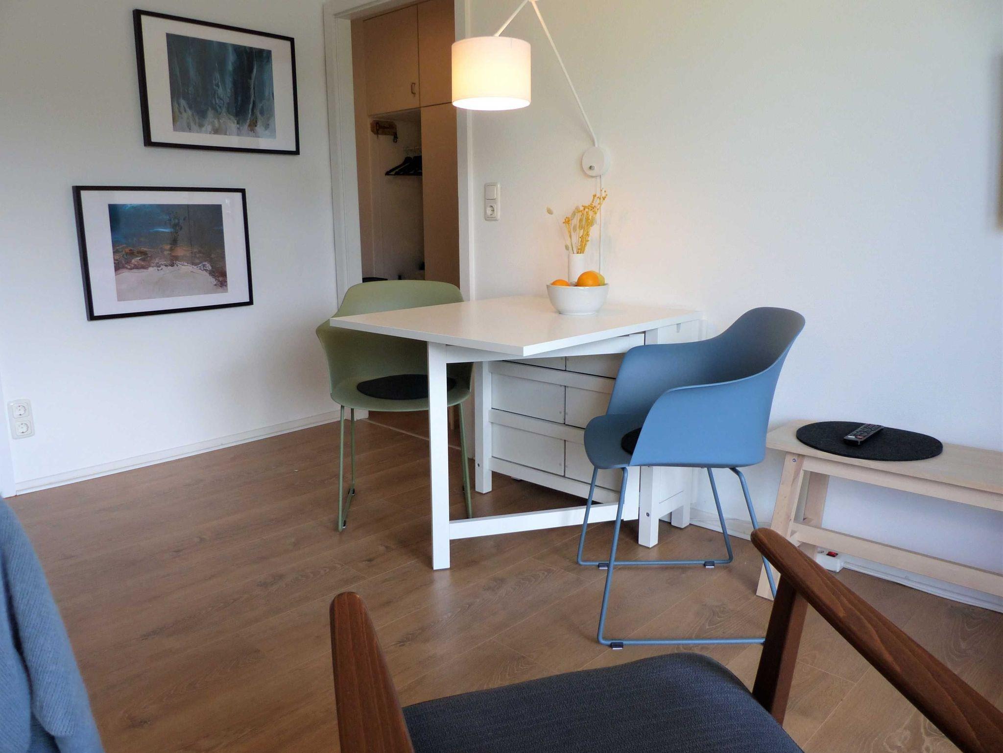 Auf 35qm finden Sie ein komfortables 1,60m breites Bett in einem attraktiven Schlafzimmer. Kommoden und Einbauschränke in Schlafzimmer und Flur bieten sehr viel Stauraum für Kleidung und Vorräte. In dem Wohnraum finden Sie ein Tagesbett, dass als wunderbares Sofa genutzt wird und nach Bedarf in ein 1,60m breites komfortables Bett umgewandelt werden kann. Der Esstisch ist flexibel nutzbar und kann sowohl durch 2 Personen, als auch 4-6 Personen genutzt werden.Homeoffice möglich - Glasfaseranschluss vorhanden. Auf Anfrage halten wir gerne ein Babybett für Sie bereit (4,50€ Aufpreis pro Tag).
