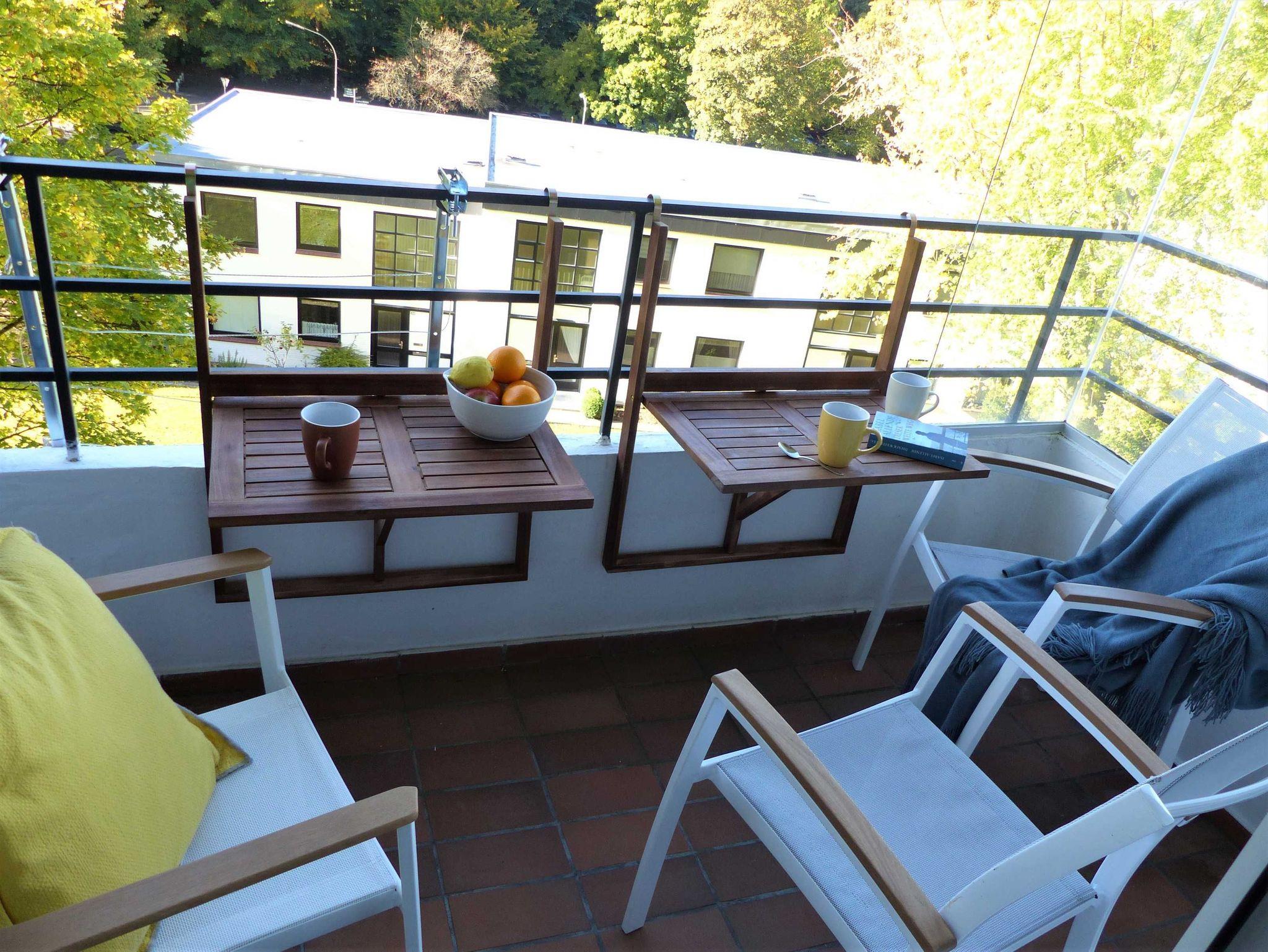 • Gemütliches Wohnzimmer mit Smart-TV, Tagesbett (ausziehbar auf 1,60 m für die 3. und 4. Person), Essplatz für bis zu 6 Personen (ausziehbarer Esstisch), Radio, Balkon